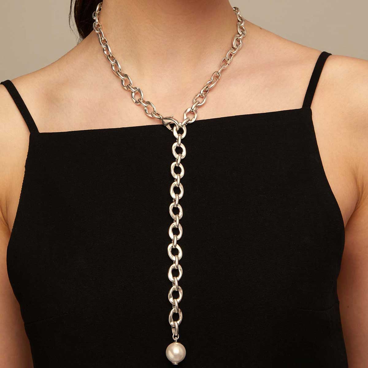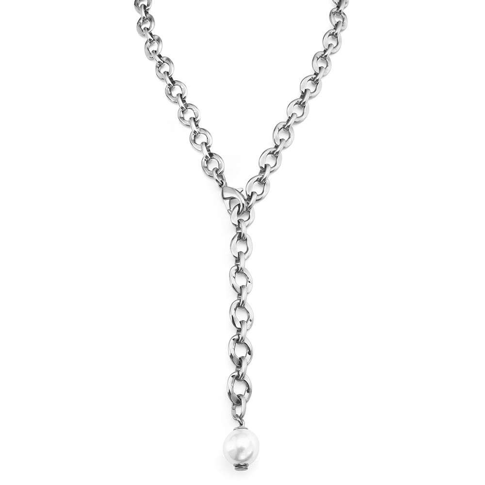 Длинное ожерелье JOY OF LIVING с серебром арт. COL1844BPLMTL из коллекции JOYFUL — дизайнерское украшение ручной работы, изготовленное из специального сплава ZAMAK. Колье выполнено в виде цепи с крупными овальными звеньями. Застегиваясь расположенной спереди застежкой карабином, ожерелье изящно обвивает шею и спускается вниз длинным подвесом, который венчает искусственная жемчужина. Фирменный замочек с гравировкой UNOde50 украшает изделие сзади. Роскошный аксессуар яркий сверкает серебрением, полностью соответствуя своему названию. Радость жизни — это то, что вы испытаете надевая украшение как к праздничному наряду, так и в повседневной жизни. Чтобы радости было еще больше, а образ стал более законченным, дополните колье серьгами арт. PEN0916MTL000, выполненными в виде такого же звена цепи, как у ожерелья.