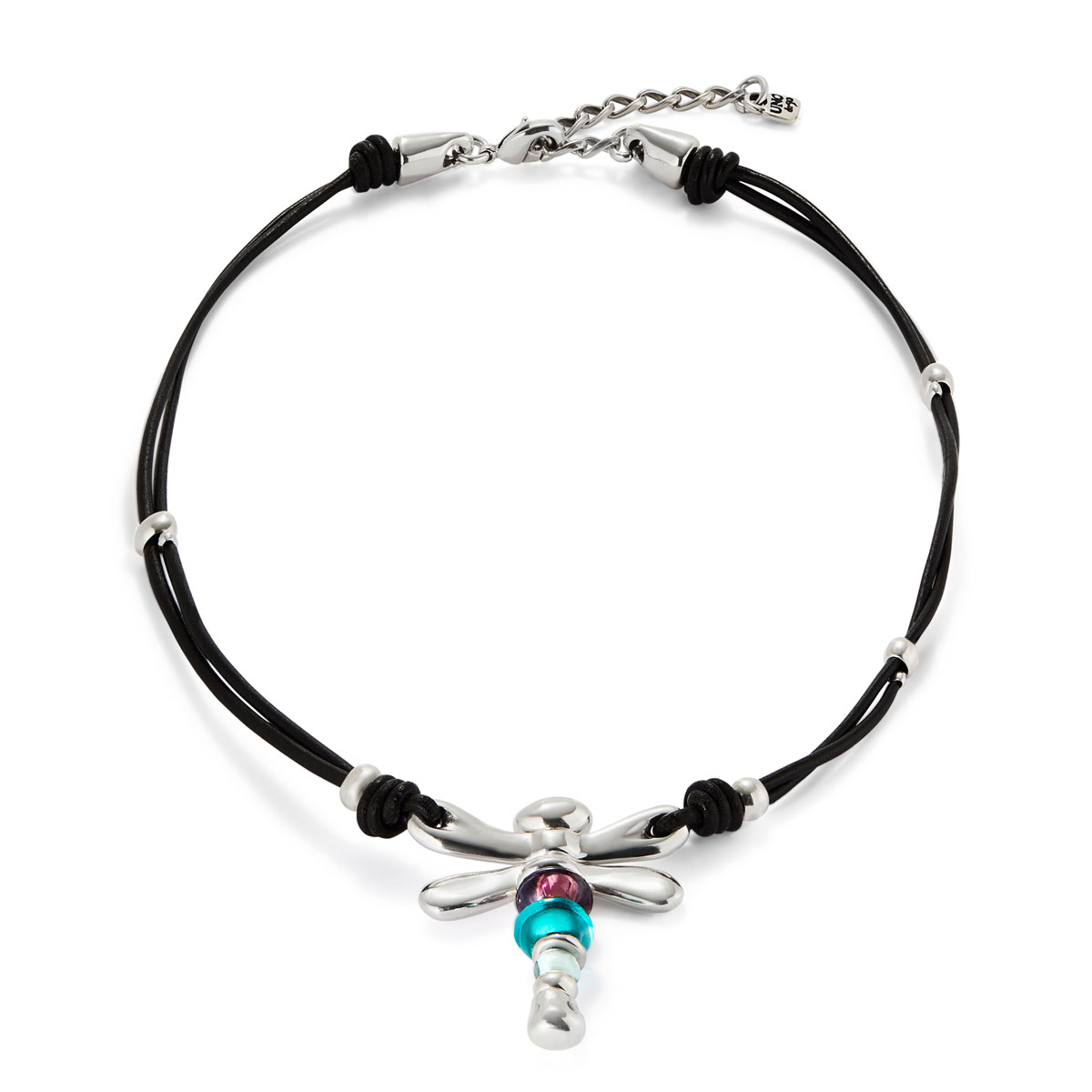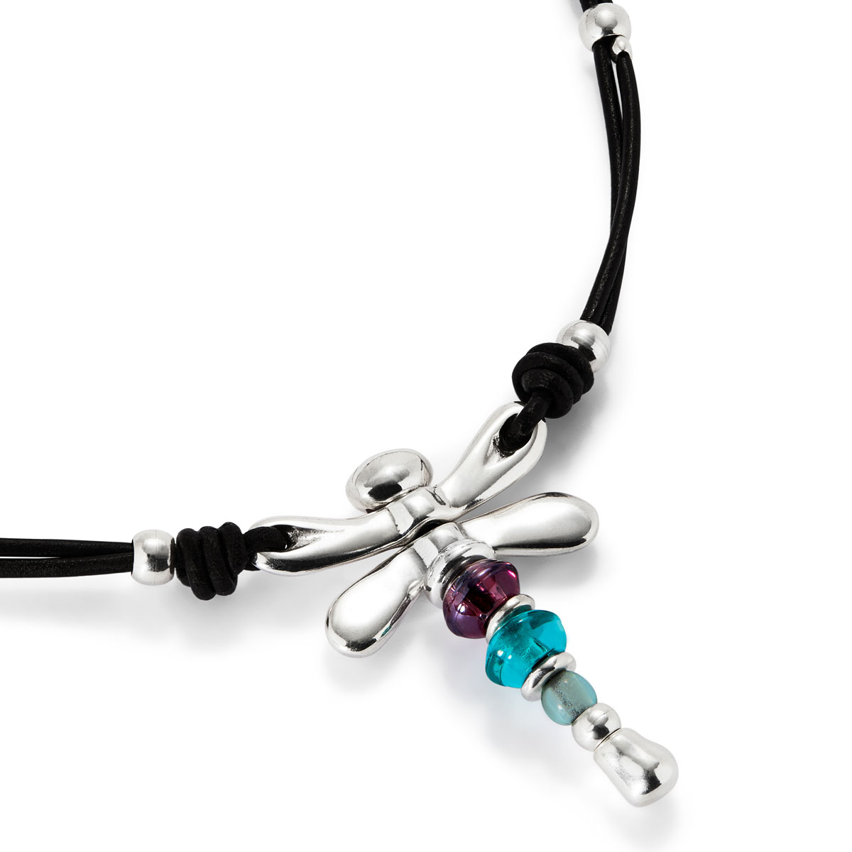 Впустите в свою жизнь цвет и летнее настроение благодаря ожерелью из кожи со стрекозой с разноцветными кристаллами, с серебром, арт. COL1959MCLMTL0U из коллекции SER REBELDE. Аксессуар ручной работы восхищает авторским дизайном, органично сочетающим различные материалы. Основа укороченного колье выполнена из темных кожаных шнурков, на фоне которых особенно ярко выделяются посеребренные детали из уникального сплава ZAMAK. Центральный элемент стилизован в форме стрекозы, которая дополнительно украшена кристаллами разных цветов. Удлинительная цепочка позволит отрегулировать посадку ожерелья наилучшим образом. Это украшение станет ярким акцентом как в повседневных, так и в праздничных образах. А символизм стрекозы добавит смысла и придаст грациозности и легкости, куда бы вы ни отправились.