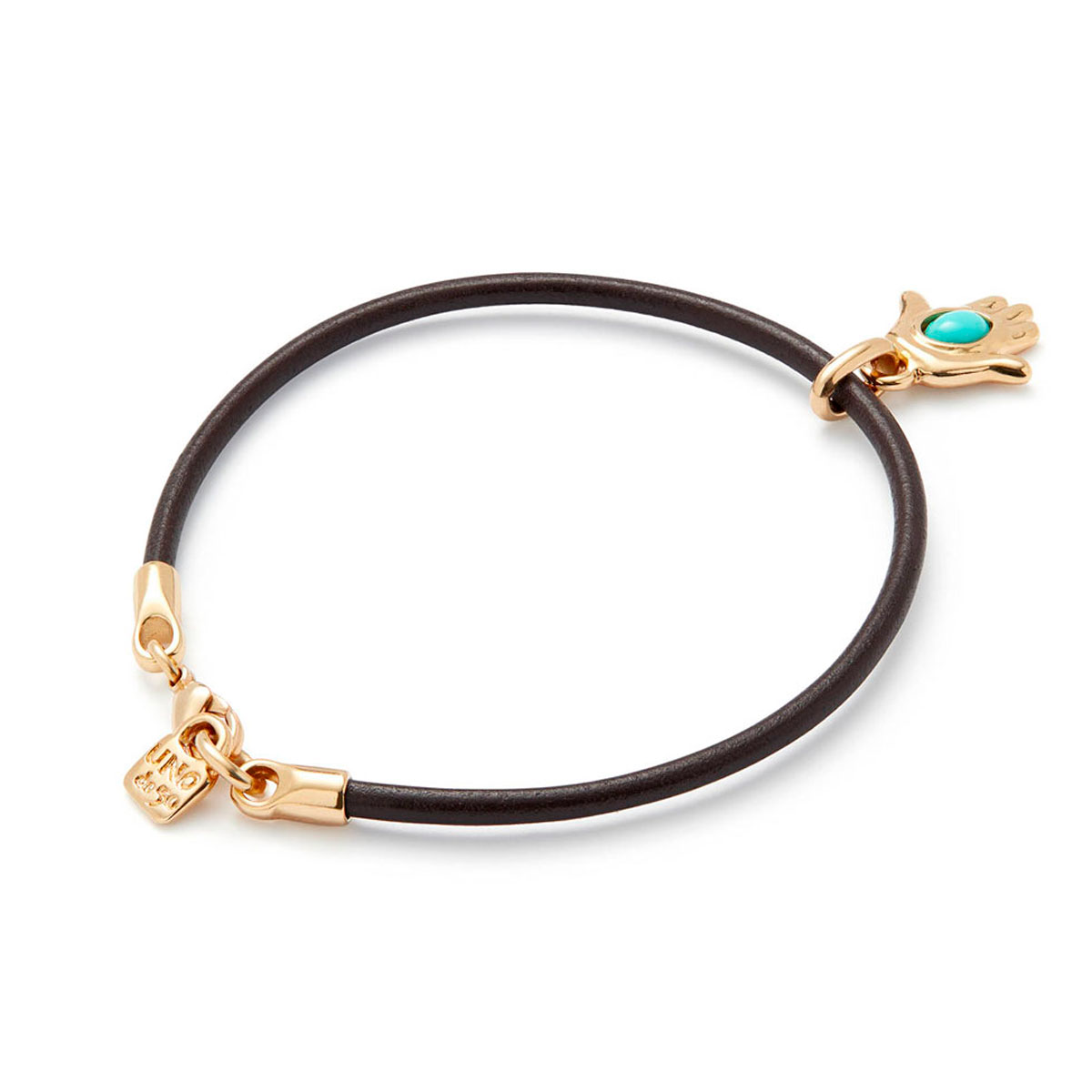 Кожаный браслет с подвеской в форме руки Фатимы, с золотом и бирюзой, арт. PUL2563MARORO0M из коллекции SER UNICO станет не только эксклюзивным украшением, но и защитным талисманом. Знак раскрытой симметричной ладони используется во многих религиях мира и носит разные названия: Хамса, рука Бога, Божья десница. Но не смотря на разницу названий, этот символ везде трактуется одинаково: как защита и поддержка высших сил. Аксессуар представляет собой шнурок из коричневой кожи, украшенный кулоном в виде знаковой ладони, центр которой декорирован бирюзой. Ручная работа, уникальный сплав ZAMAK, авторский дизайн — это эксклюзивное украшение достойно стать неотъемлемой частью вашего образа, добавляющим ему магию символизма.