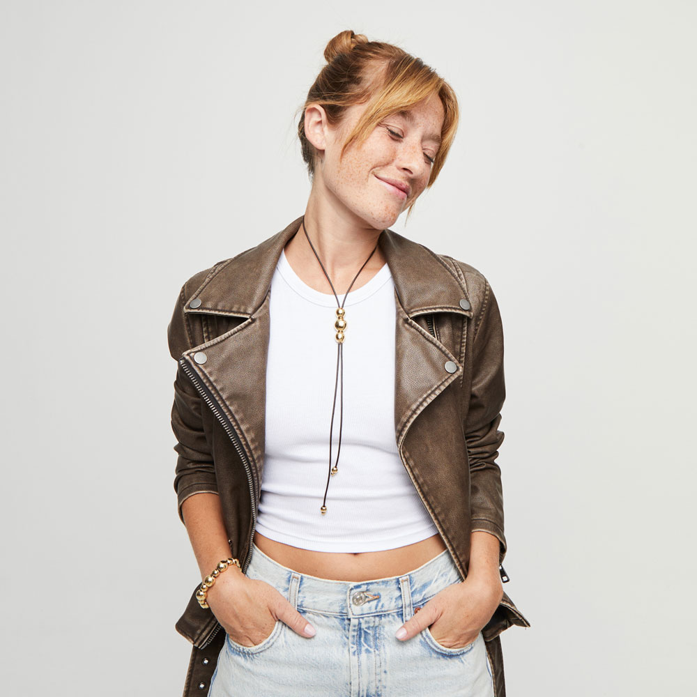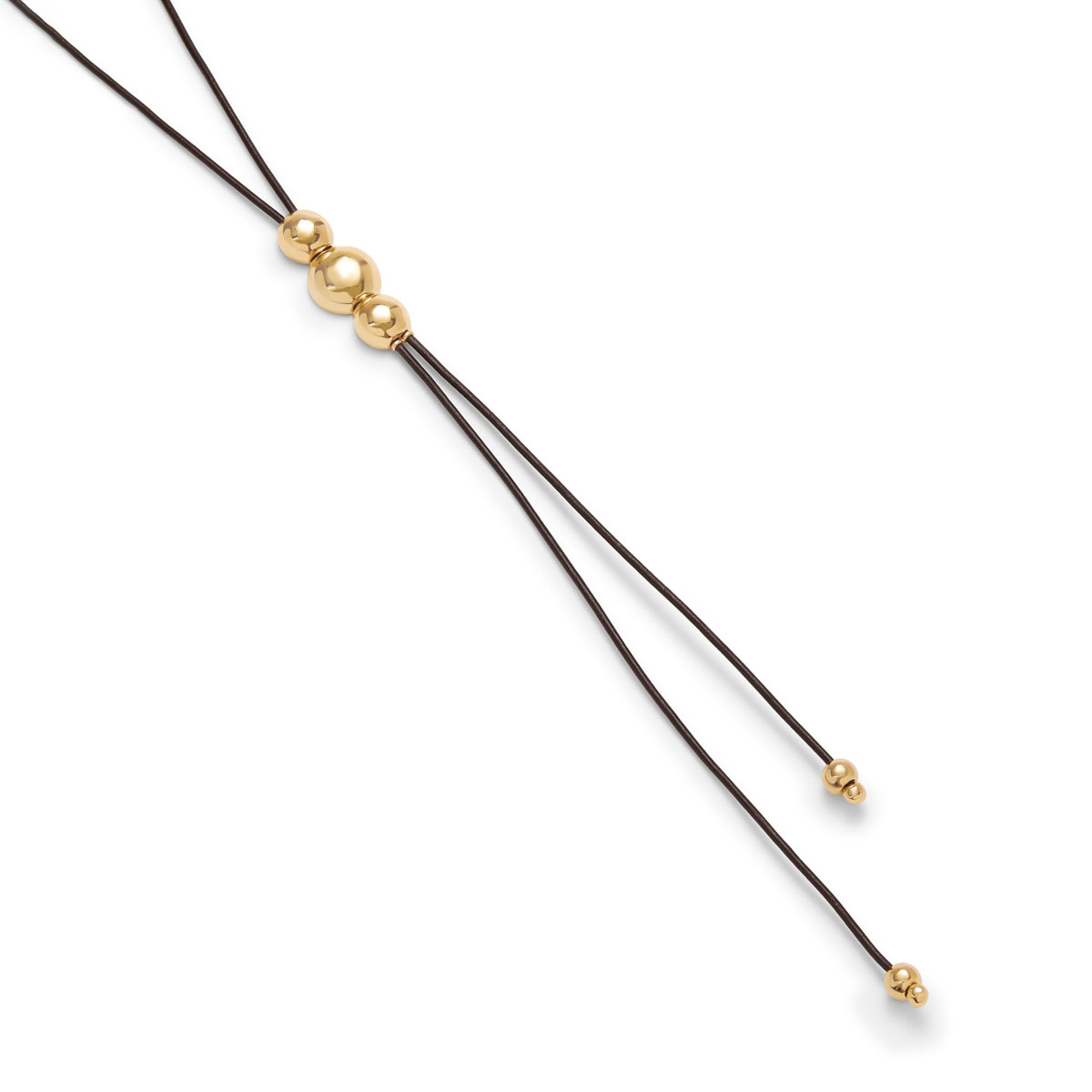 Изысканное кожаное ожерелье Ser Intrepida с золотом, арт. COL1998MARORO0U — выбор творческих натур, стремящихся проявить свою индивидуальность. Основой аксессуара являются два длинных шнурка из кожи, которые обвивают шею, благодаря соединению с помощью крупных металлических сфер разного диаметра. Спускающиеся вниз концы шнурков украшены дополнительными элементами. Соединение черной кожи и позолоченного сплава ZAMAK создает впечатляющий контраст. Изящное стильное украшение ручной работы с авторским дизайном станет достойным дополнением вечернего наряда. При этом благодаря своей лаконичности колье может служить выразительным акцентом и в повседневном образе.