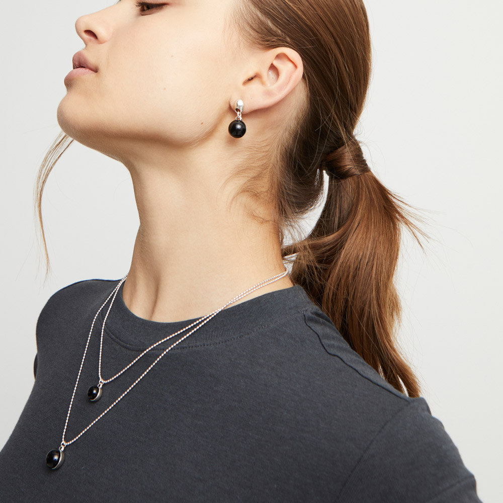 Аккуратные формы, поистине магнетический вид, красота, удобство – всё это сочетают серьги из бижутерного сплава, покрытые стерлинговым серебром с чёрным муранским стеклом и бусинами из коллекции Ser Fascinante. Если вы давно искали, как сделать свой образ завораживающим и в то же время сдержанным – это украшение подойдёт идеально. Готовьтесь ловить восхищённые взгляды – ваш образ навсегда останется в память тех, кому посчастливится встретить вас!