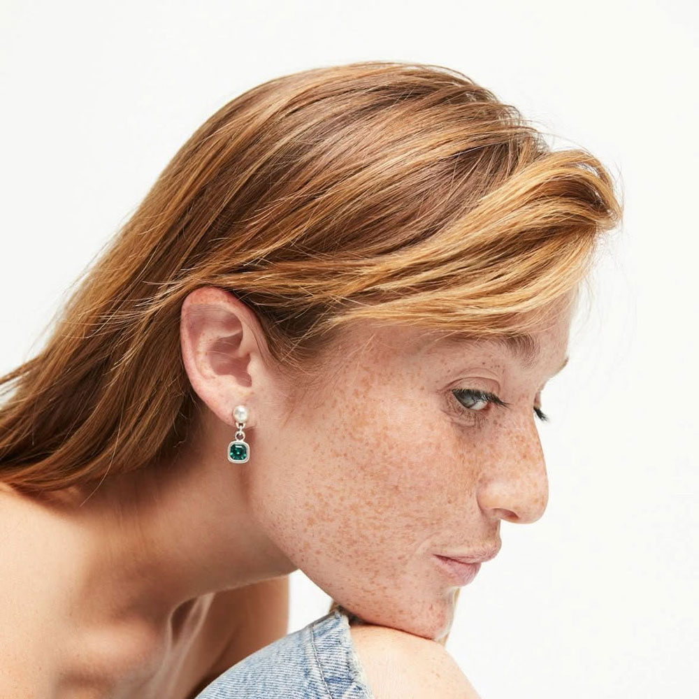 Серьги Ser Expresiva с зеленым кристаллом, с серебром