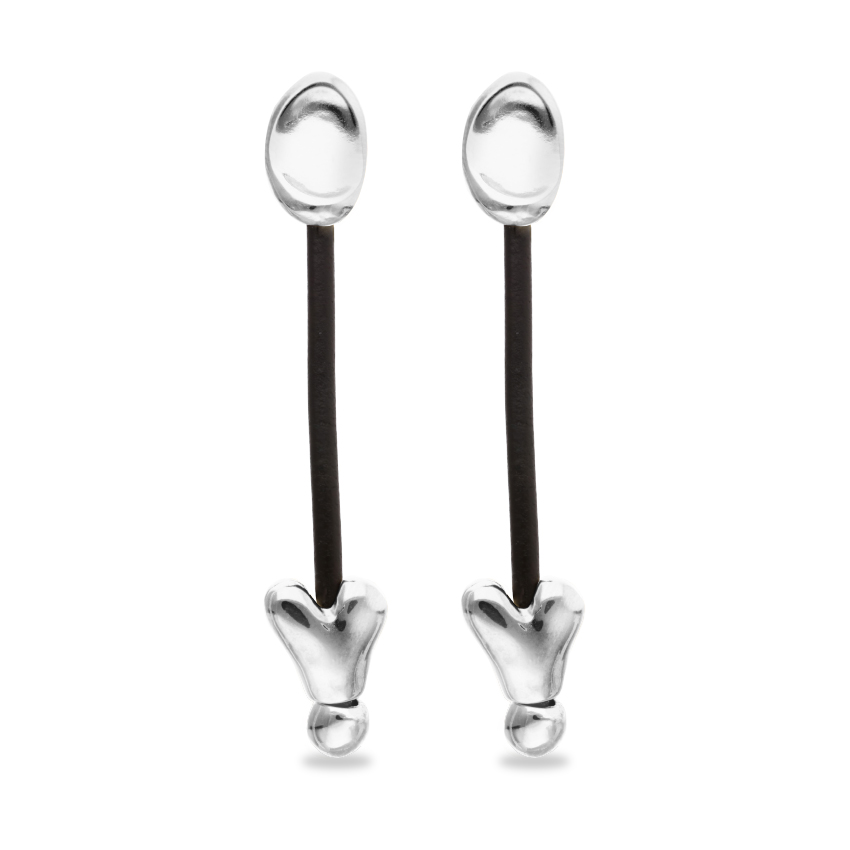 Серьги выполнены вручную из сплава ZAMAK с серебряным покрытием и дополнены кожаным элементом. Застежка-гвоздик обеспечивает надежную фиксацию, а подвижная конструкция добавляет легкость и делает форму живой в движении. Эти стрелы — символ чувства, которое находит вас неожиданно и становится незабываемым.