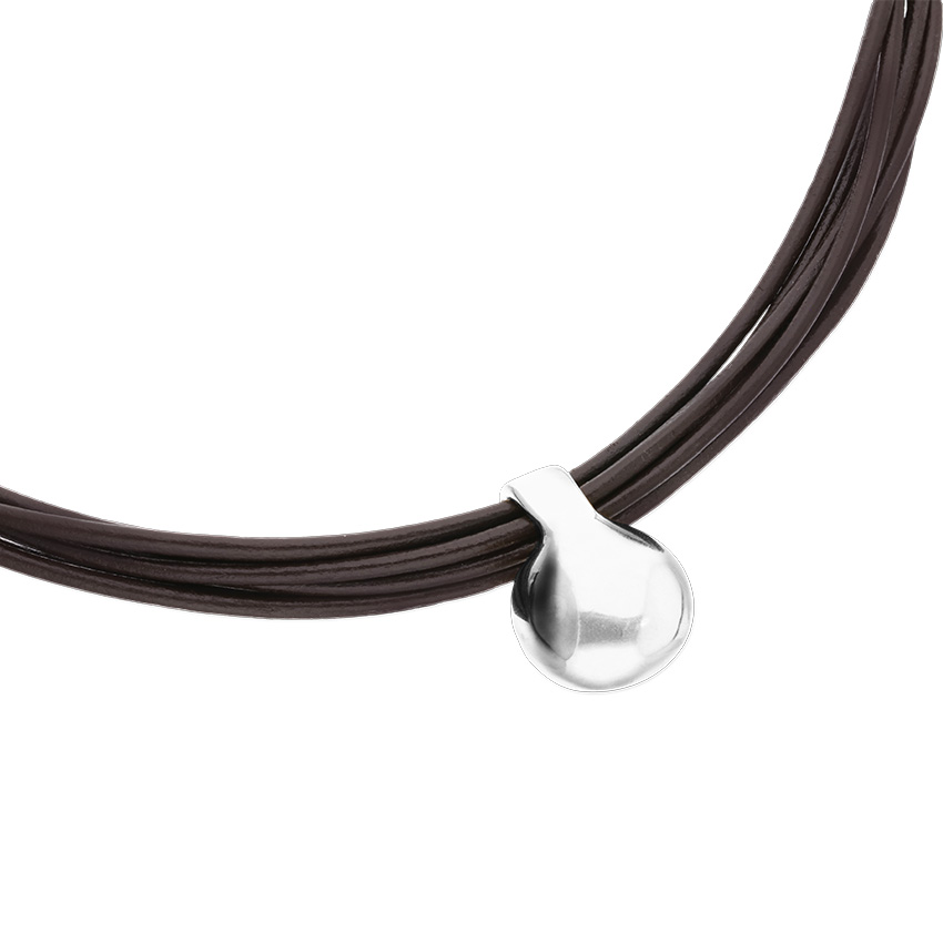 Колье «Пути» (COL2046MARMTL) — украшение из коллекции Gravity / Gravedad о способности сохранять себя и свои ориентиры, даже когда открывается множество направлений. Несколько кожаных шнуров объединяются в единую линию вокруг шеи, создавая мягкую, но выразительную форму, а центральная металлическая деталь становится точкой фокуса. В этом колье скрыта идея — идти своим путем, не теряя внутренней опоры.