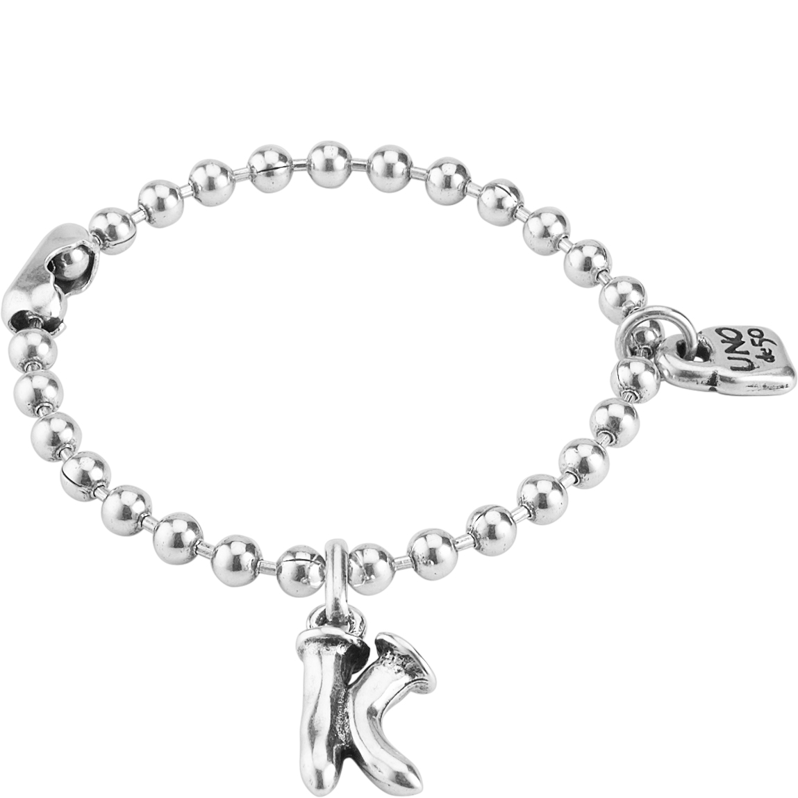 Минималистичная подвеска «K малая» арт. CHA0037MTL0000U в виде буквы сможет стать отличным вариантом для подарка близкому человеку. С помощью такого украшения можно подчеркнуть свою индивидуальность или составить послание из нескольких таких аксессуаров, объединив их на одной цепочке. Подвеска с уникальным дизайном от бренда UNOde50 выполнена из металлического сплава, покрытого серебром.