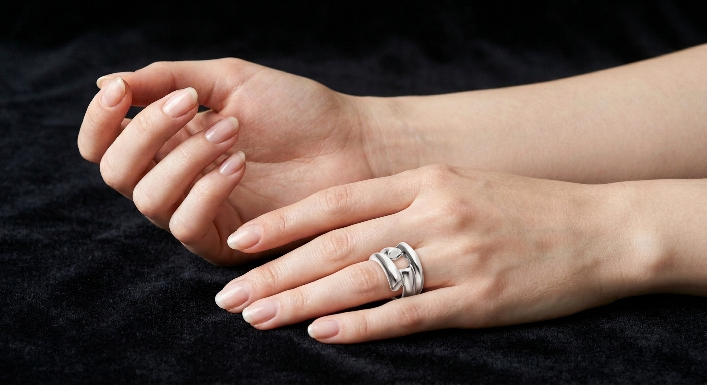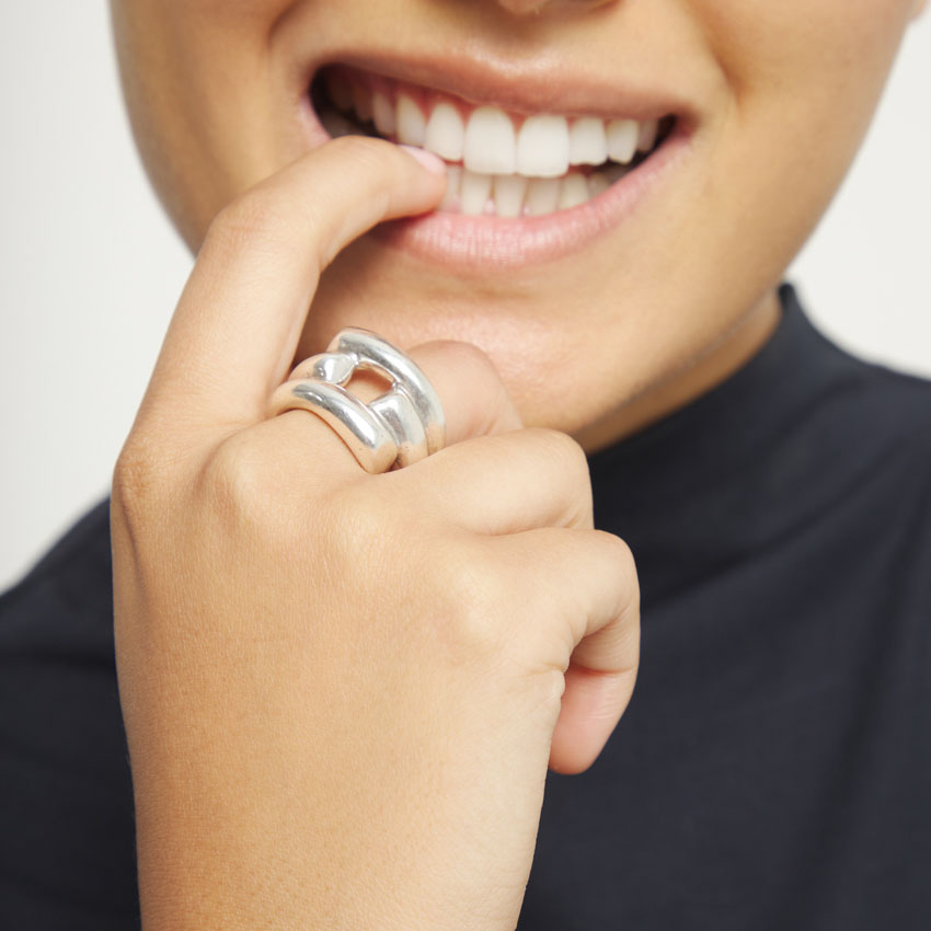 - Casual и Street style: Носите его с денимом, объемным трикотажем или кожаными элементами. Массивная форма кольца идеально дополняет современные городские образы.