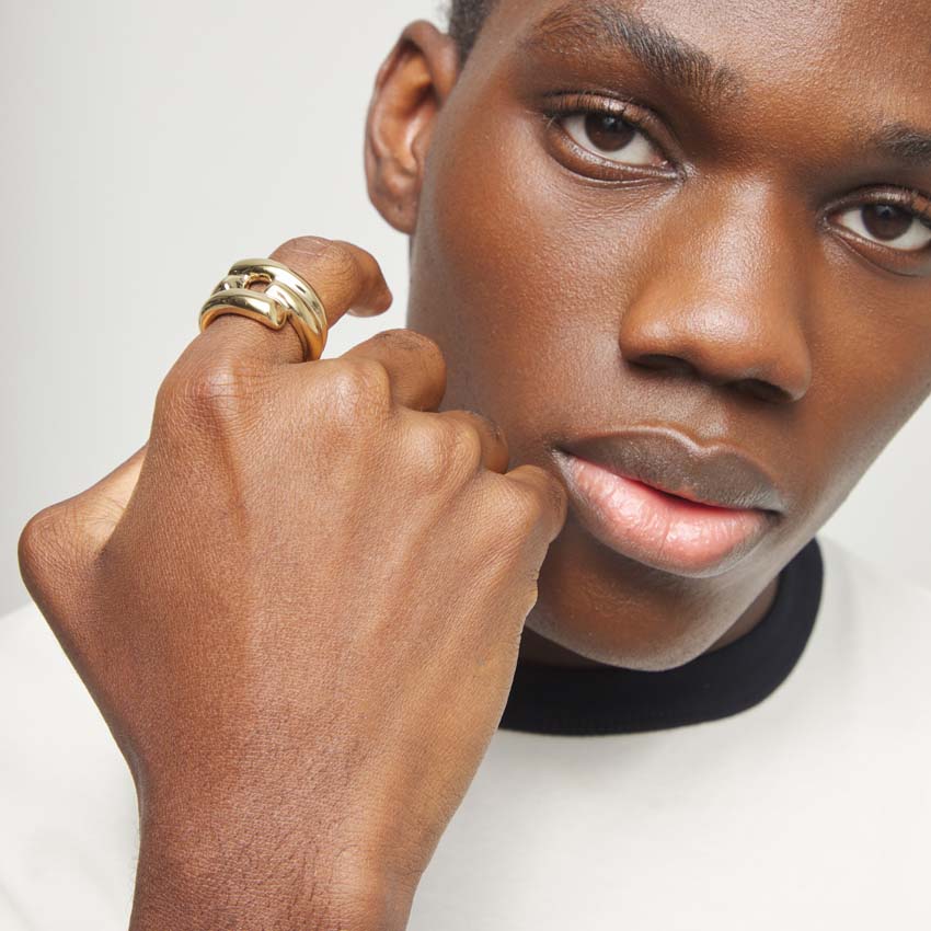 Изделие выполнено из металла с позолотой. Кольцо состоит из нескольких переплетенных элементов, похожих на ветви. Кольцо аккуратно обхватывает палец, обеспечивая комфорт и надежную посадку. Рельефная текстура ветвей придает объем и выразительность, а легкий вес кольца делает его удобным для постоянного ношения. Тщательно проработанные детали ветвей придают кольцу выразительность и объем, а легкий вес делает его удобным для постоянного ношения.
