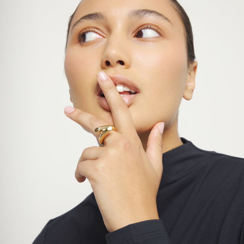 Кольцо выполнено из металла с позолотой, отличается плавными линиями ветви и комфортной посадкой на пальце. Легкий вес и эргономичная форма обеспечивают удобство при длительном ношении, а изящная текстура подчеркивает природный мотив.