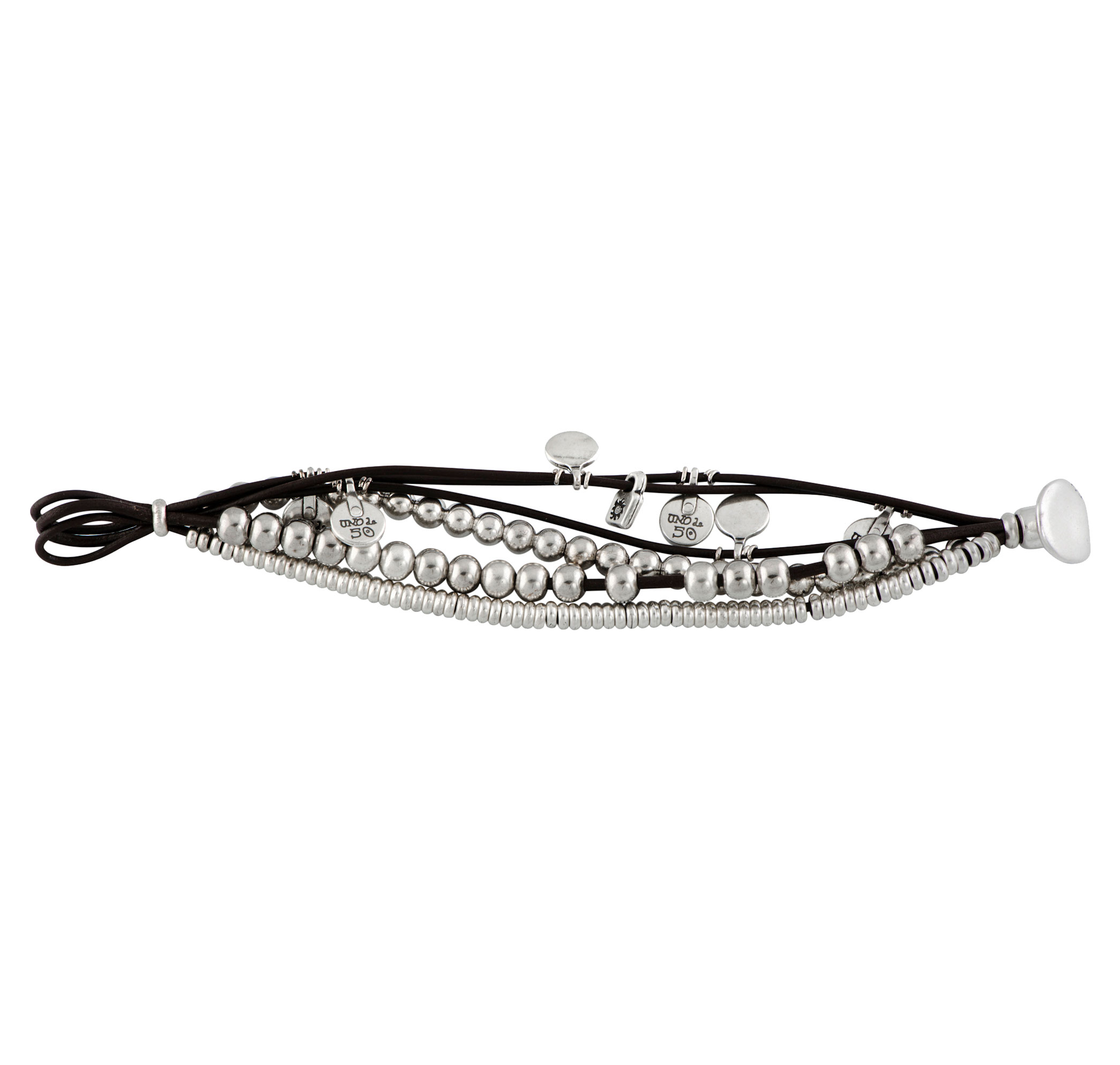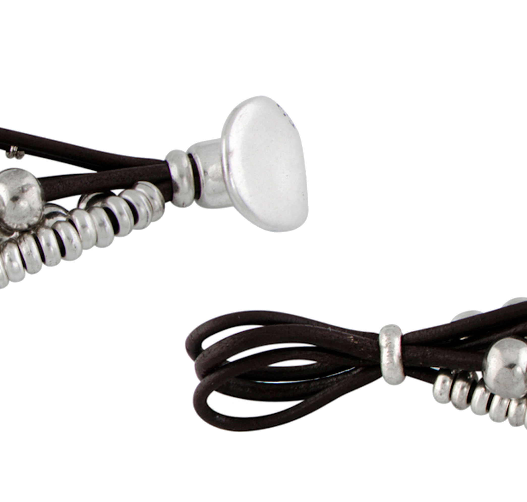 Женский браслет «What a mess!» арт. PUL0524MT с несколькими рядами темно-коричневых кожаных нитей и бусинами из металлического сплава с серебряным покрытием. Многослойные украшения до сих пор остаются в тренде и хорошо сочетаются практически с любыми образами. Аксессуар представляет собой полностью ручную работу, поэтому его количество ограничено, а каждое изделие по-своему уникально.