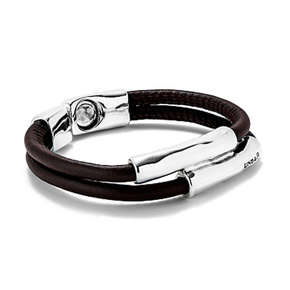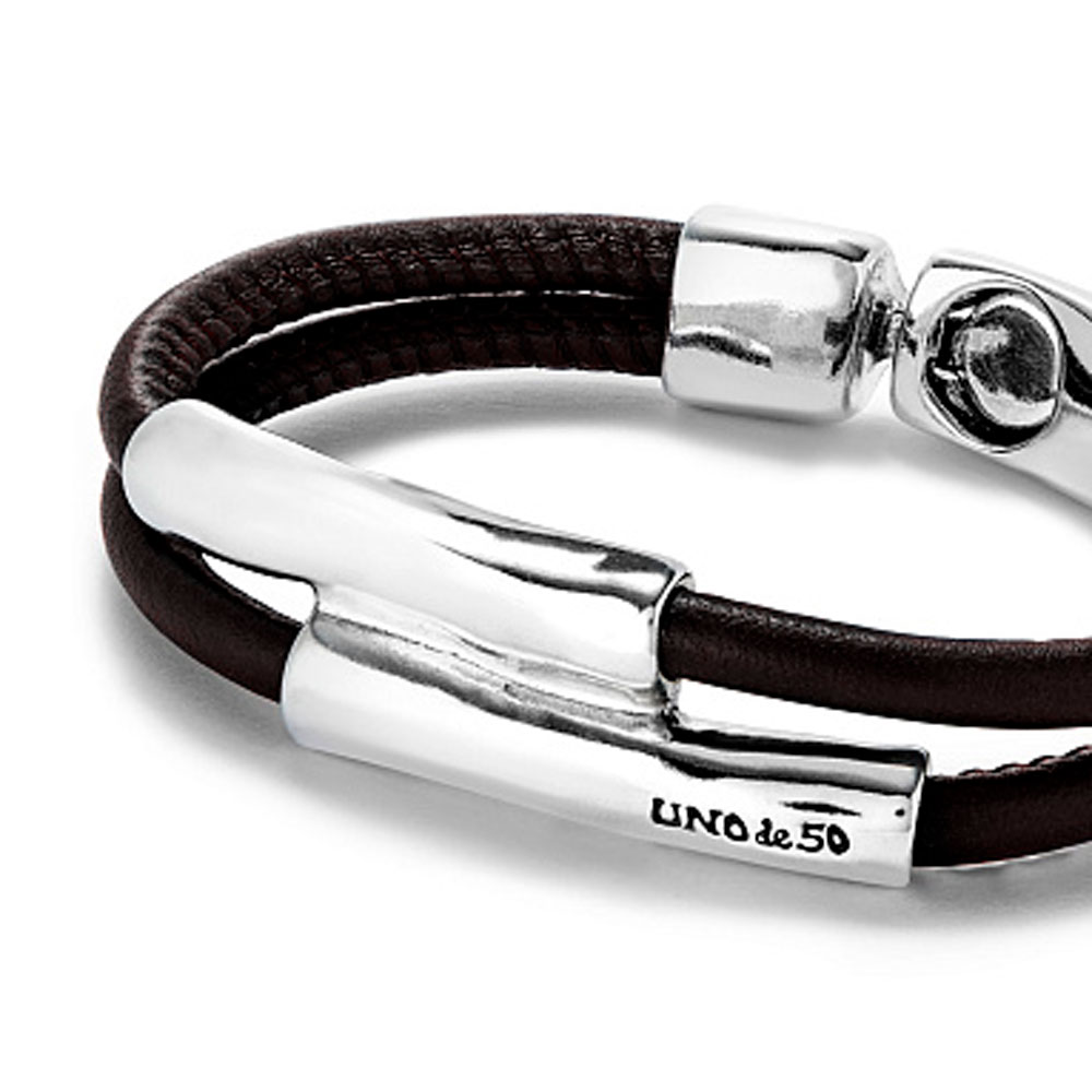 Двойной браслет из кожи темно-коричневого цвета с двумя трубками, с серебром, арт. PUL2464MARMTL из коллекции SER NATURAL — выбор творческих натур, готовых ярко продемонстрировать свою индивидуальность. Изделие представляет собой два круглых кожаных ремешка насыщенного коричневого оттенка, на каждый из который надета металлическая трубка, изготовленная из уникального сплава ZAMAK с покрытием из стерлингового серебра. Ручная работа, эксклюзивный дизайн, фирменная гравировка UNOde50 — все, чтобы этот аксессуар стал выдающимся элементом образа, креативным акцентом, способным украсить любой наряд.