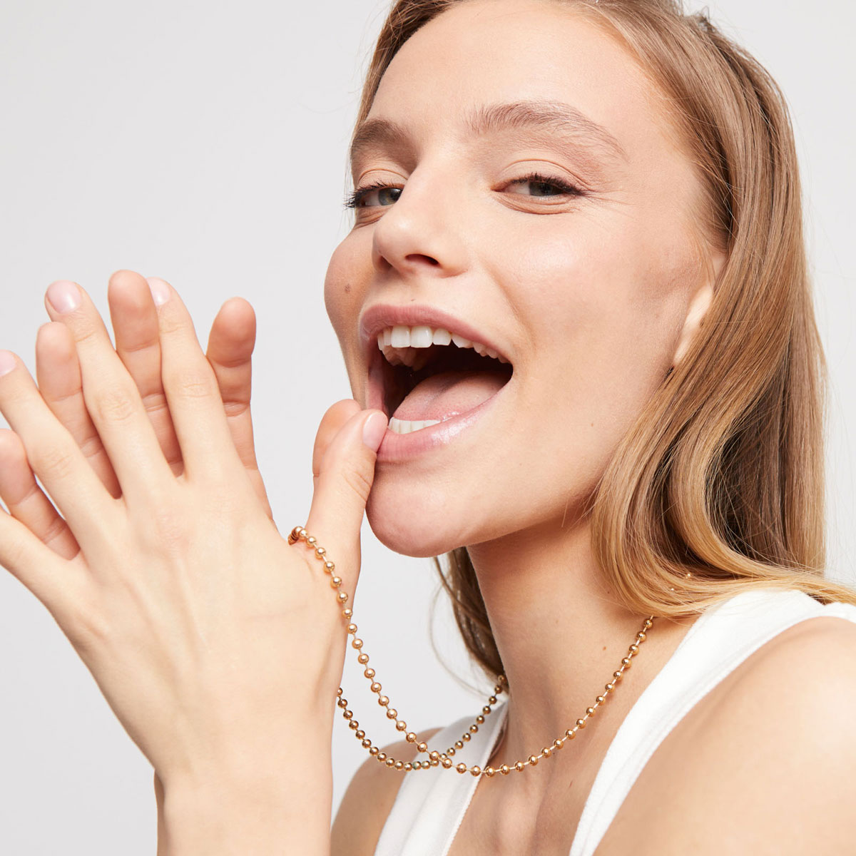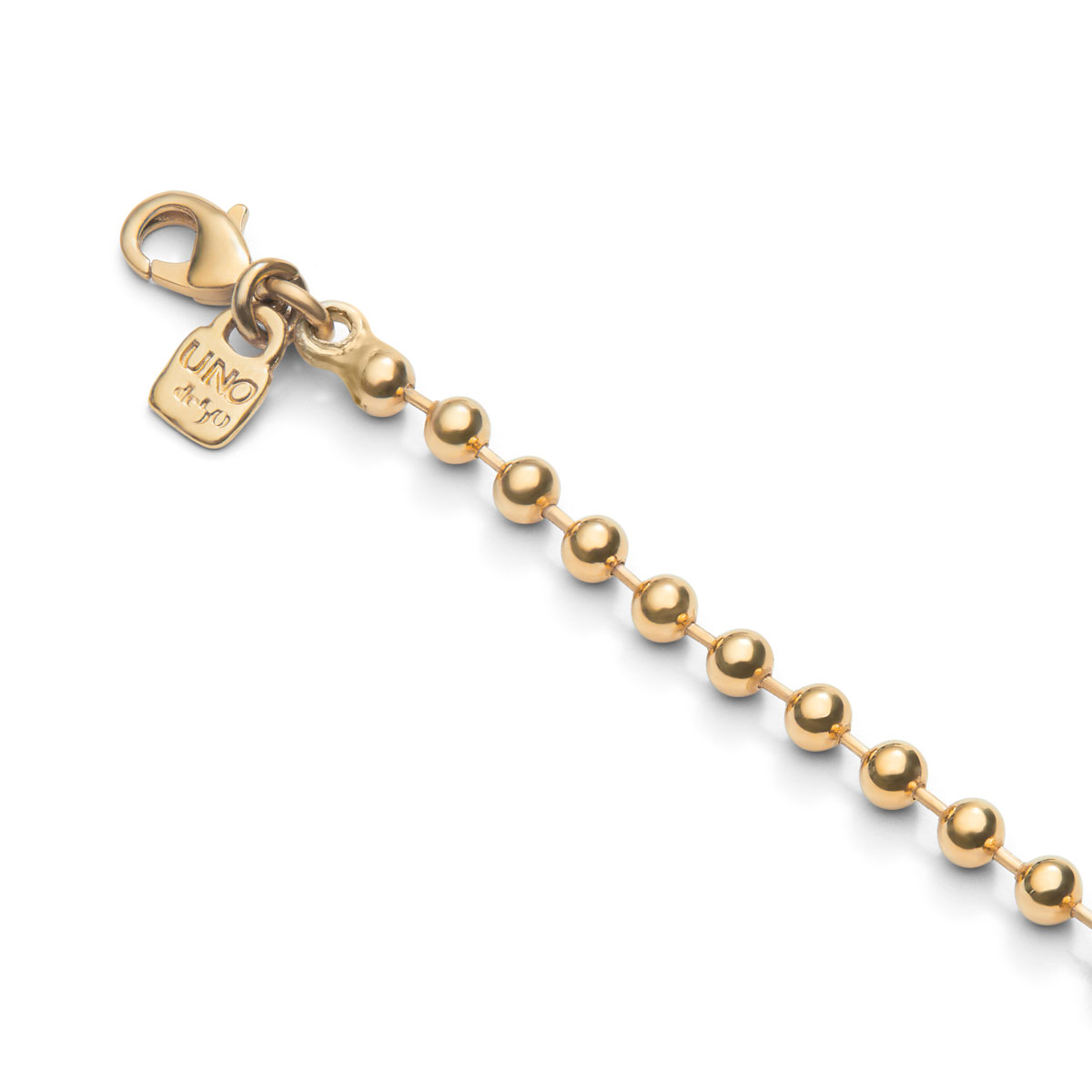 Длинная цепочка из шариков, с золотом, арт. COL1968ORO0000U из коллекции Hazte Uno относится к категории базовых аксессуаров, которым можно украсить любой образ, как повседневный, так и праздничный. Изделие ручной работы изготовлено из уникального сплава ZAMAK с покрытием из 18-каратного золота. Цепочка представляет собой чередование металлических бусин и соединяющих их цилиндров. Удобная застежка-карабин дополнена пластиной с фирменной символикой, подчеркивающей высокое качество и эксклюзивность украшения.