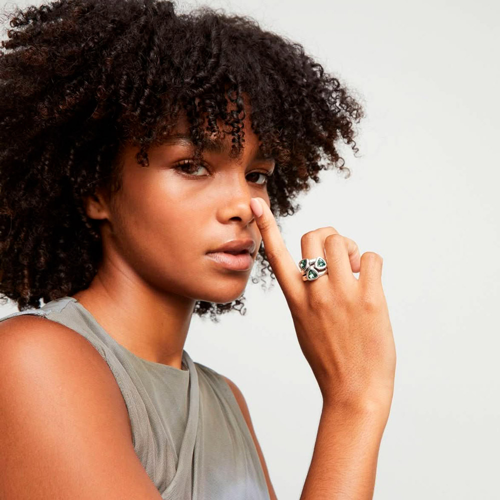 Кольцо Ser Camaleonica с зелеными кристаллами, с серебром