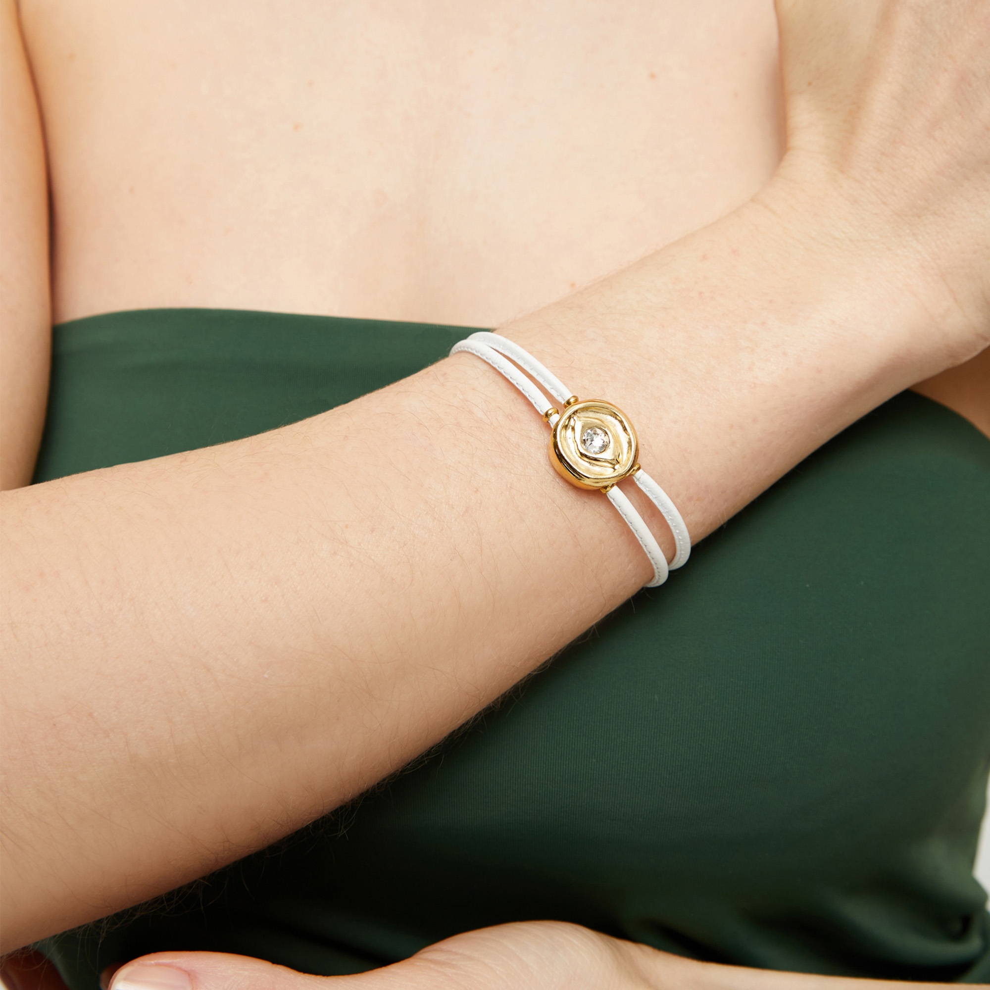 Кожаный браслет глаз Ser Intuitiva с белым кристаллом, с золотом