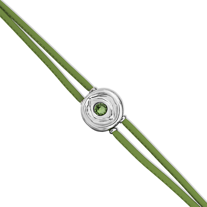 Кожаный браслет глаз Ser Intuitiva с зеленым кристаллом, с серебром