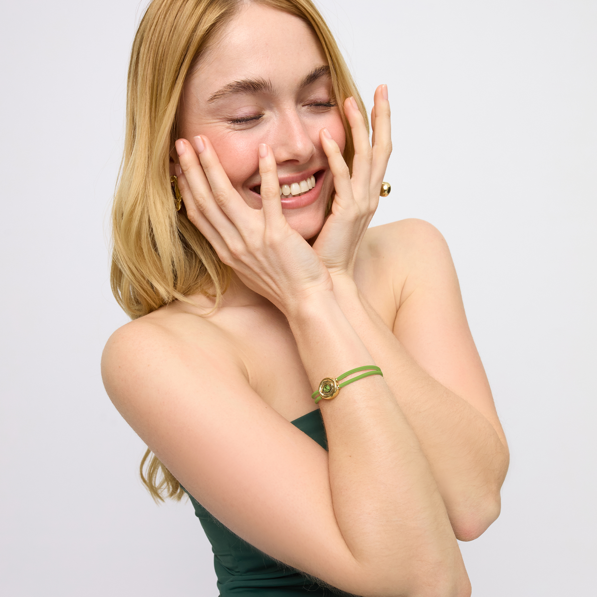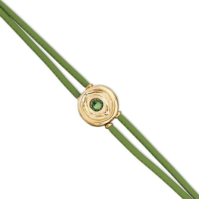 Кожаный браслет глаз Ser Intuitiva с зелёным кристаллом и позолотой — это украшение, в котором оживает трепет прикосновений и пульсует энергия скрытых желаний.