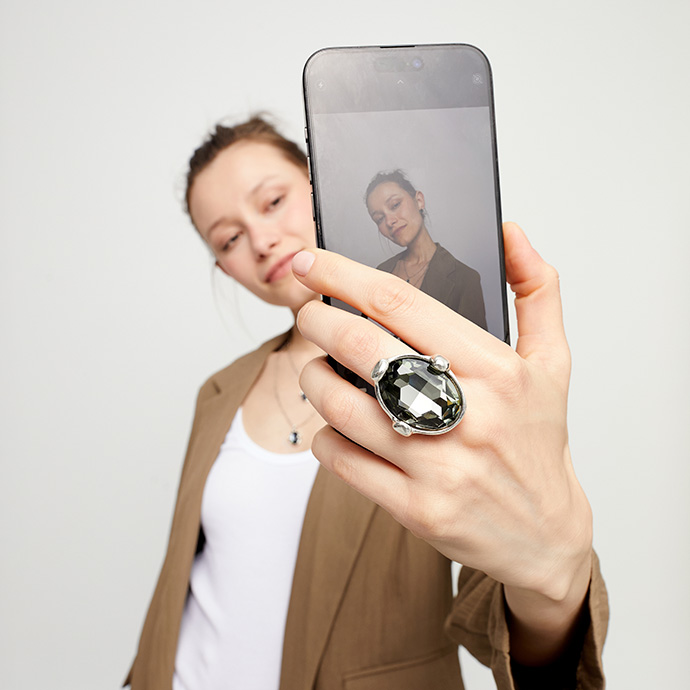 Кольцо Ser Deslumbrante с круглым серым кристаллом будто соткано из тумана и лунных теней. В центре мерцает круглый серый кристалл - спокойный, глубокий, как ночное небо перед рассветом. Он хранит в себе мудрость и зрение за пределами очевидного, словно позволяя владельцу видеть истину сквозь дымку иллюзий.