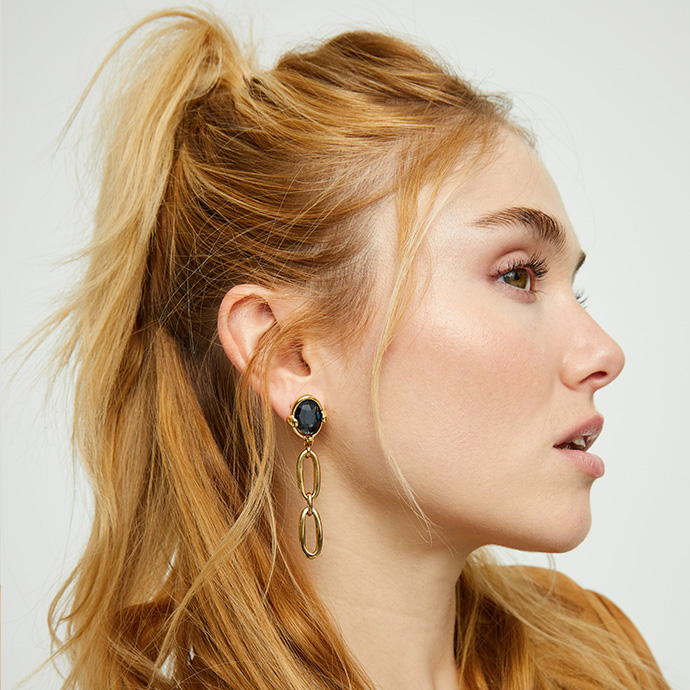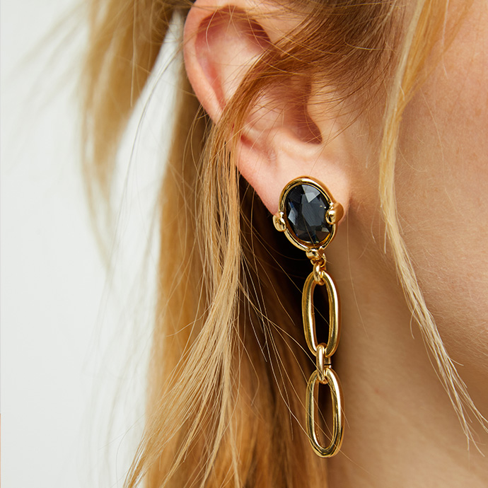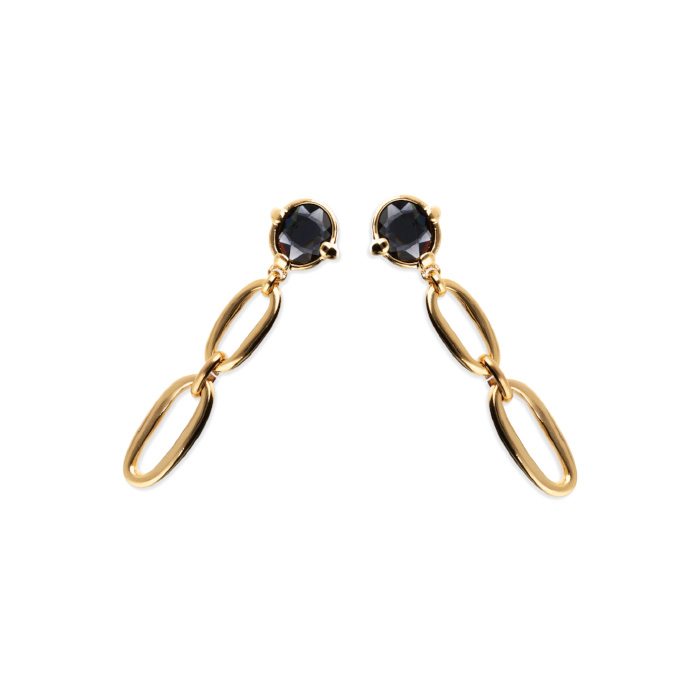 Серьги-цепи Ser Deslumbrante с черным кристаллом, с золотом