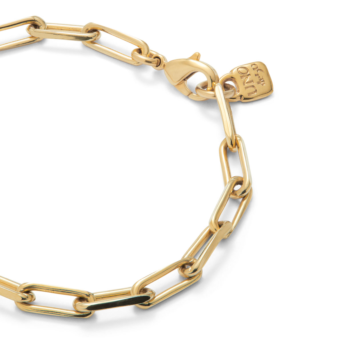 Почувствуйте уверенность в себе с помощью браслета с золотом арт. PUL2503ORO000 из коллекции Hazte Uno. Аксессуар, выполненный в виде цепочки с крупными прямоугольными звеньями скругленной формы, словно источает энергию, способную раскрыть вашу внутреннюю силу. Уникальный сплав ZAMAK, из которого изготовлено изделие, сверкает позолотой, подчеркивая оригинальный дизайн. Дополнительным декором служит фирменный замочек UNOde50, который говорит об эксклюзивности украшения ручной работы, созданного, чтобы день изо дня делать ваш образ ярче и смелее.