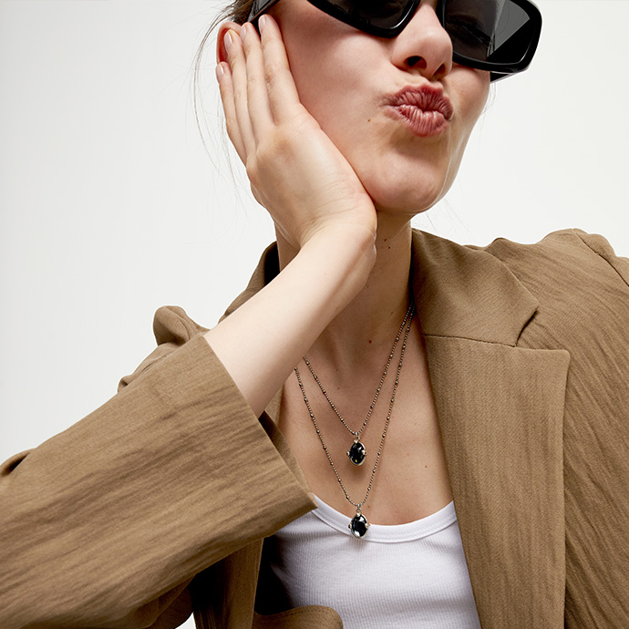 Двойное ожерелье Ser Deslumbrante с черным кристаллом, с серебром