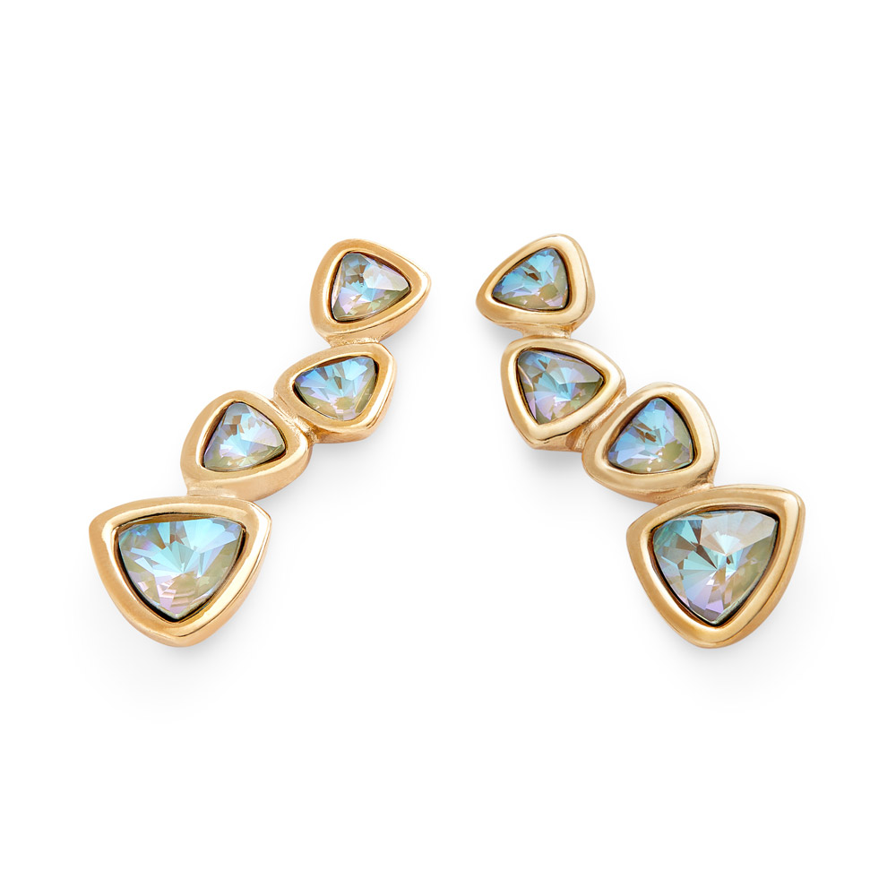 Серьги с золотым покрытием Ser Camaleonica — словно лучи закатного солнца, пойманные в изящной форме. Их кристаллы-хамелеоны переливаются волшебными оттенками — от тёплого медового до нежного розового, меняясь при каждом движении, будто откликаясь на свет и настроение. Они словно живут своей тайной жизнью, отражая внутренний свет своей обладательницы. Это украшение — больше, чем акцент: это прикосновение золота и магии, которое превращает каждый образ в особенный.