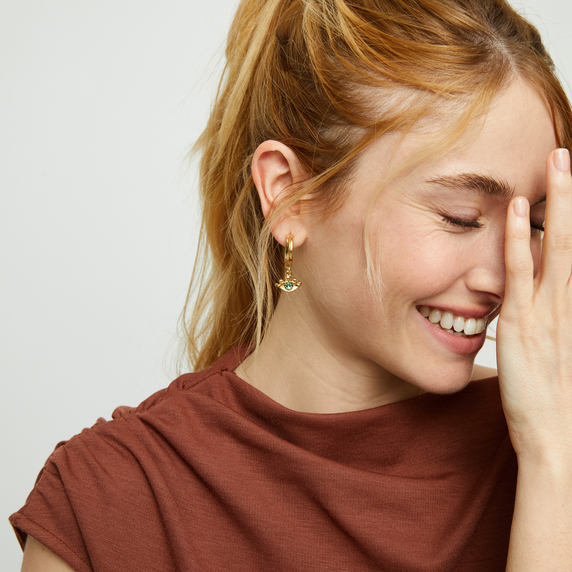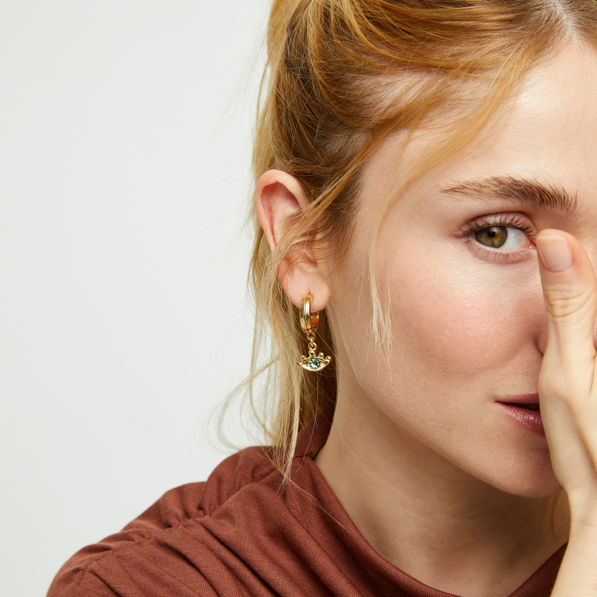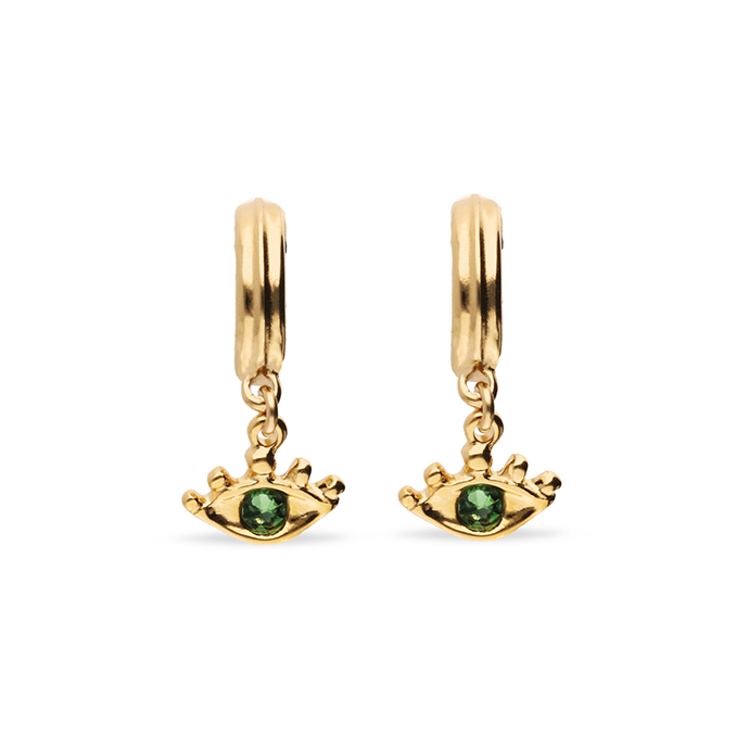 Позолоченные серьги глаза Ser Intuitiva с зелёными кристаллами — это украшение, сотканное из утренних росинок и солнечных лучей, способное подчеркнуть самую нежную грань вашей красоты.
