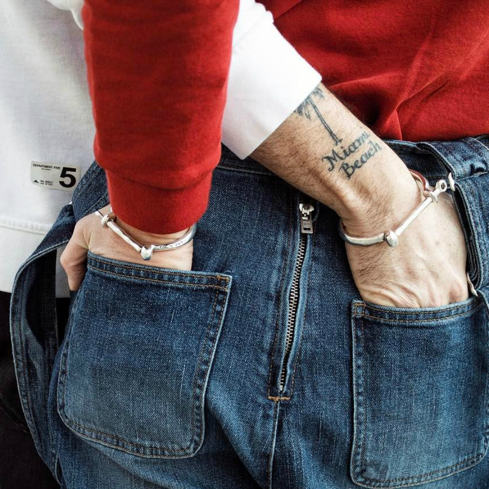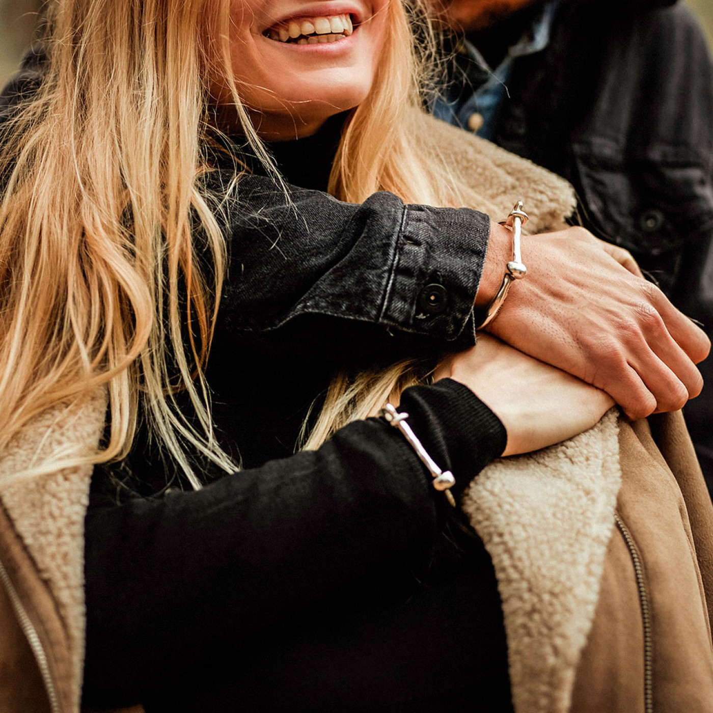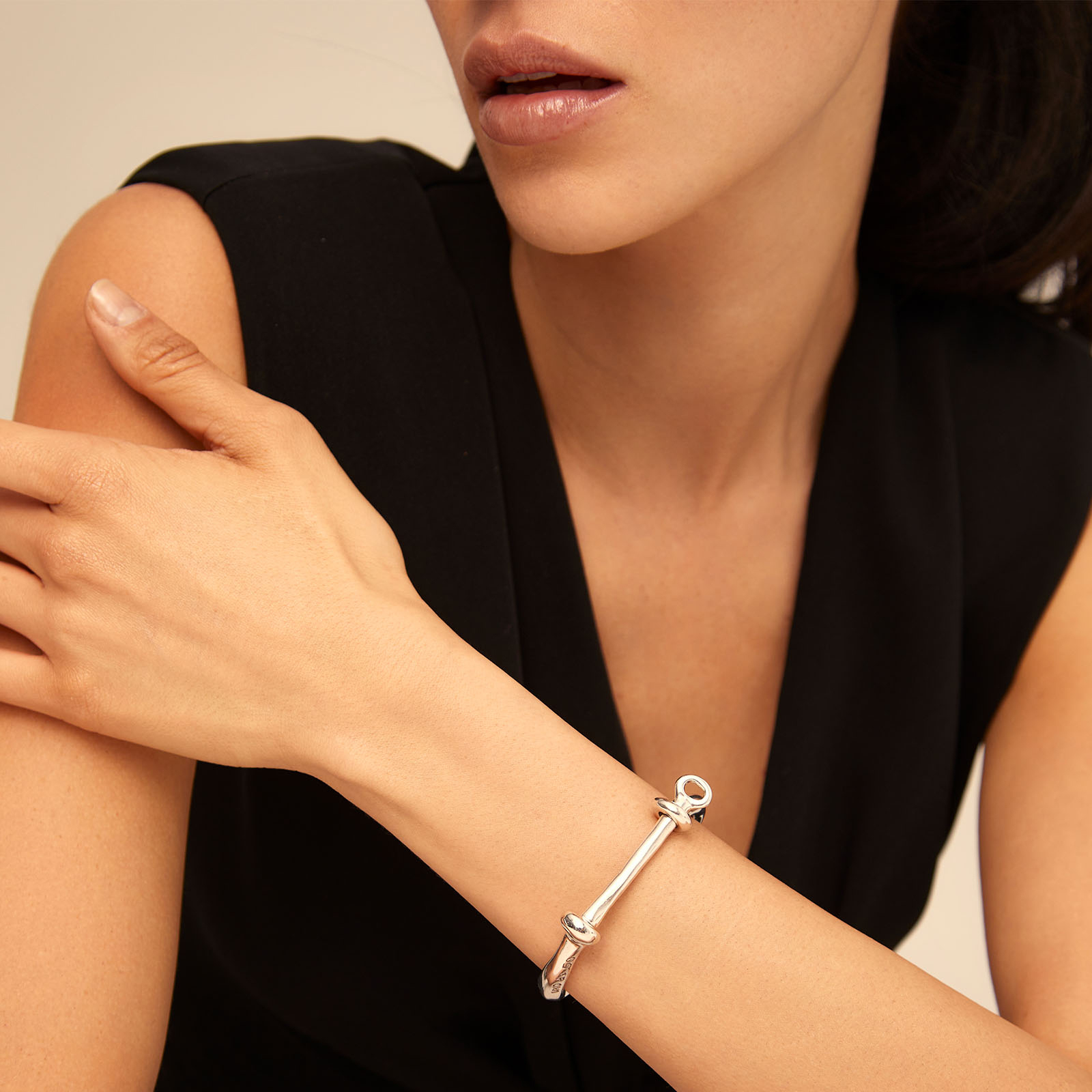 Браслет из посеребренного металла с оригинальным дизайном в виде подковы.