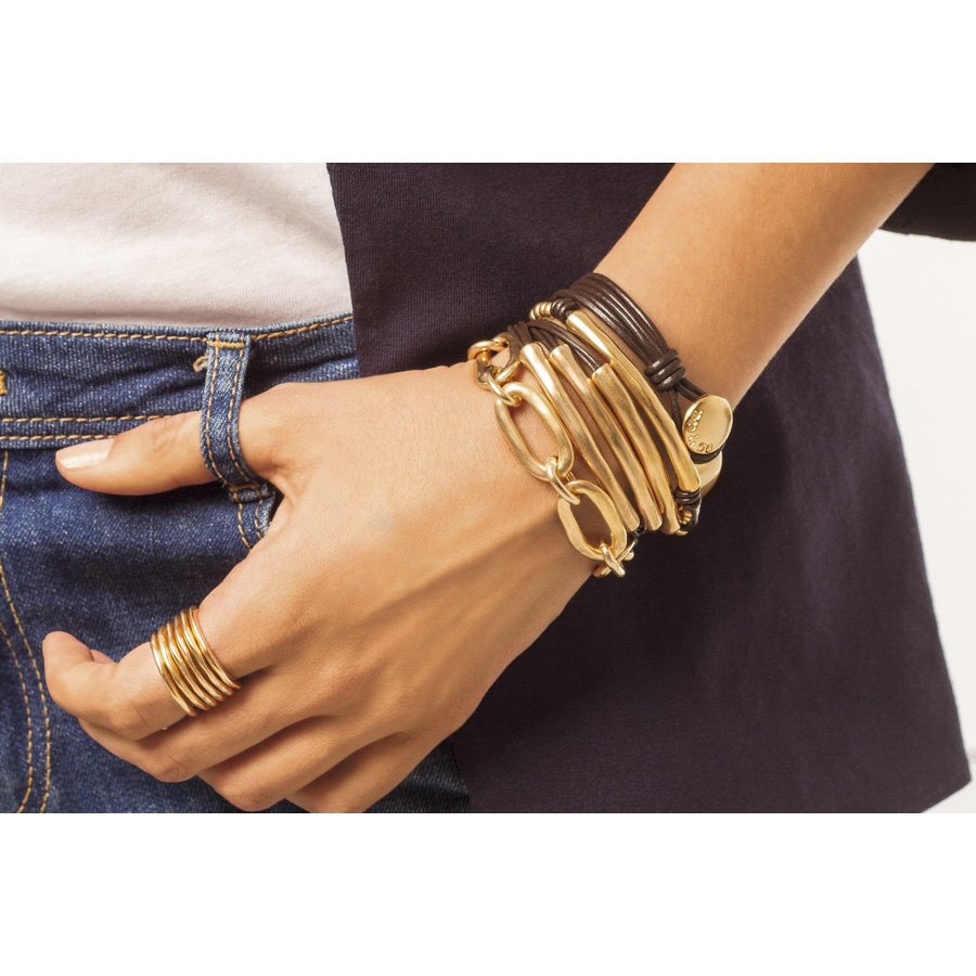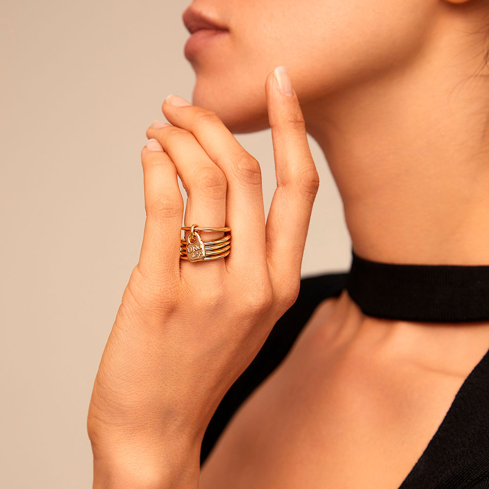 Составное женское кольцо из металического сплава с золотым покрытием и фирменным висячим замочком UNOde50.