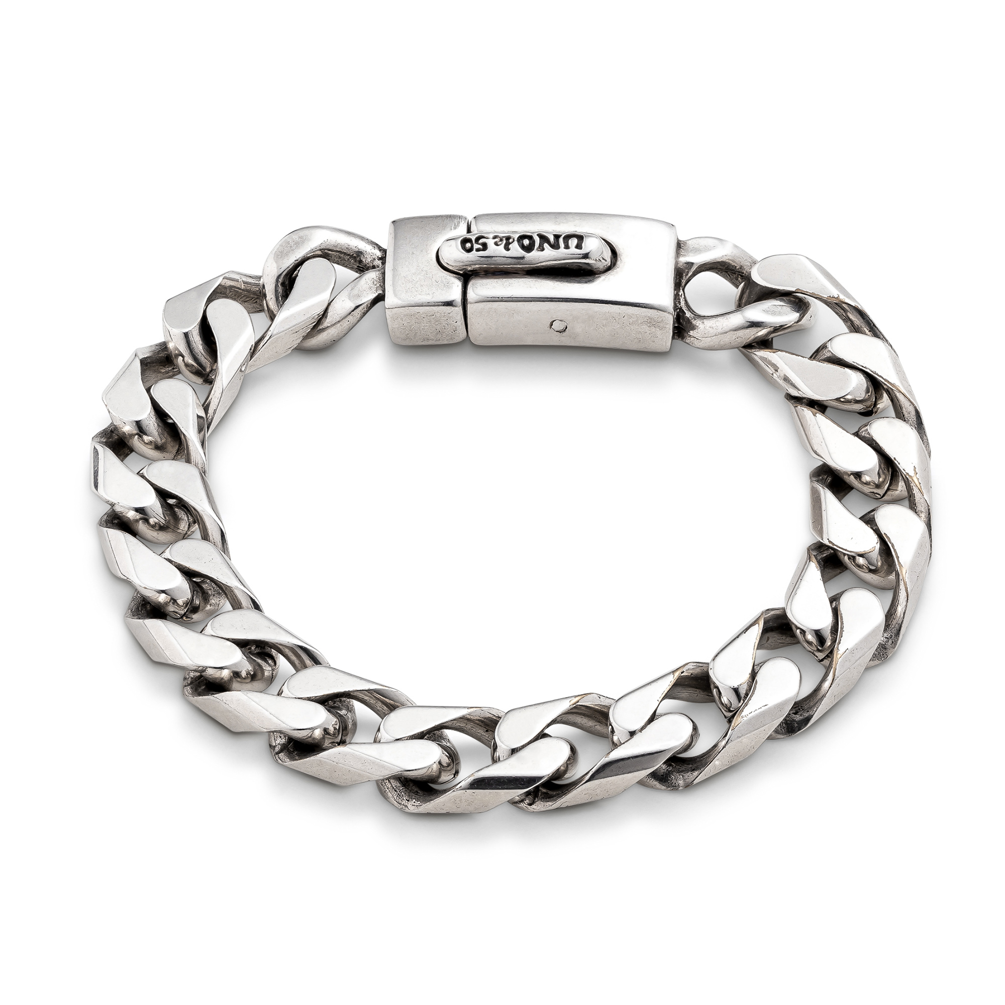 Браслет Sharp PUL2269MTL0000L из массивной плоской цепи оригинального плетения и стильной застежкой с брендовой гравировкой. Ручная работа из Испании с использованием посеребренного металлического сплава ZAMAK. Порадуйте себя этим браслетом, изготовленным с использованием уникальных ремесленных техник, которые отражают суть UNOde50.