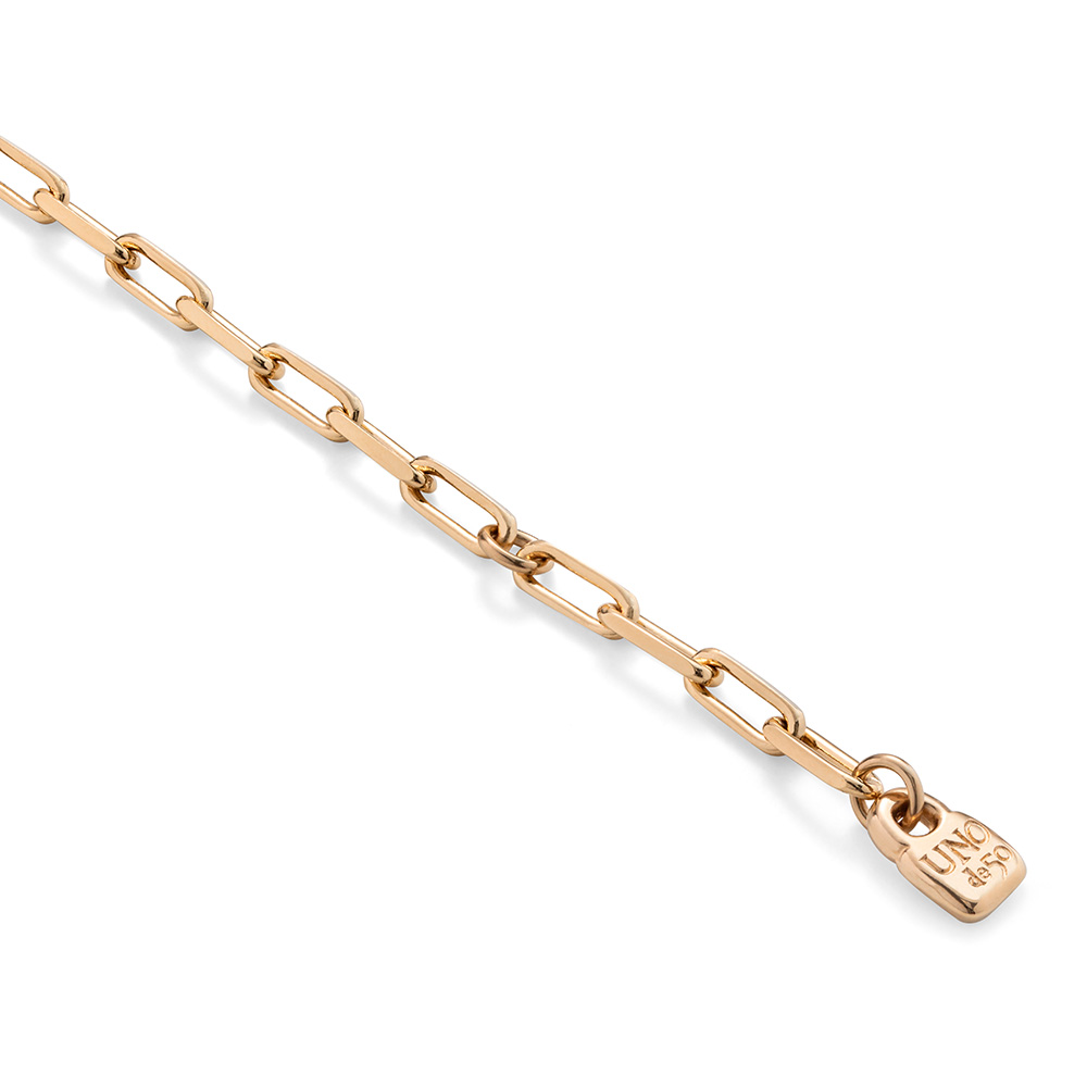 Удлиненная цепочка CHAIN 8 с золотом орт. COL1607ORO000 из коллекции PERSONALIZATION —классическое универсальное украшение, которое можно использовать для любого образа. Продолговатые средние по размеру звенья цепи изящно сцепляются друг с другом, словно перетекая из одного в другое. Сверкание позолоты добавляет аксессуару шика. Длина изделия регулируется с помощью удлиняющей цепочки, которая заканчивается фирменным замочком с гравировкой. Цепочка изготовлена из уникального сплава ZAMAK путем ручной работы, что делает ее эксклюзивным украшением, наделенным особенным шармом.