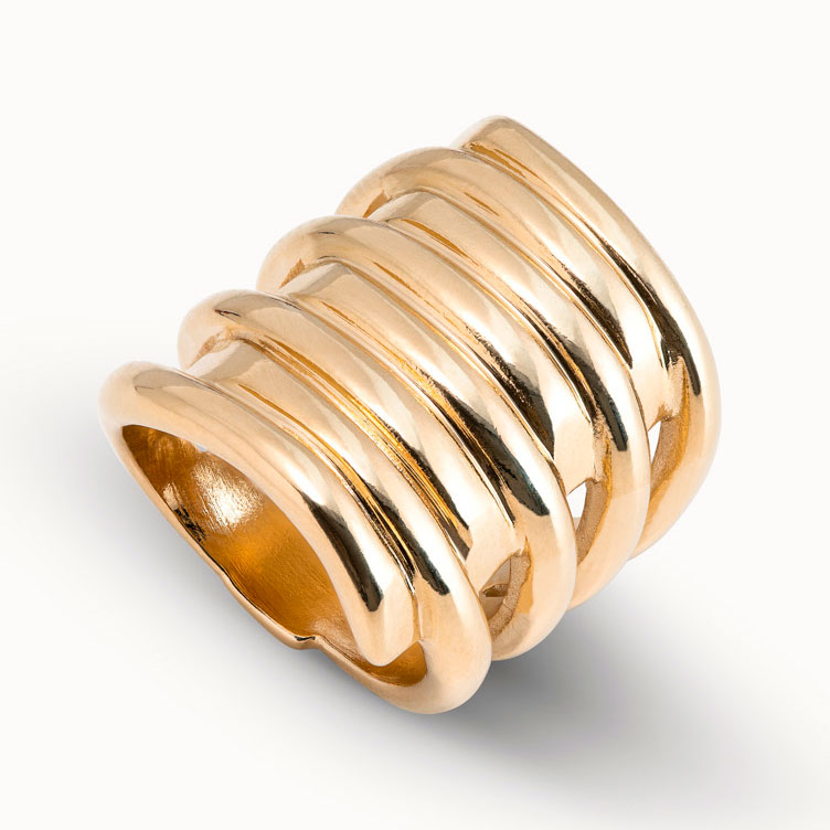 Кольцо UNOde50 Tornado из коллекции Basic (ANI0302ORO000) — кольцо из сплава ZAMAK с золотым покрытием, выполненное в выразительной многослойной форме.