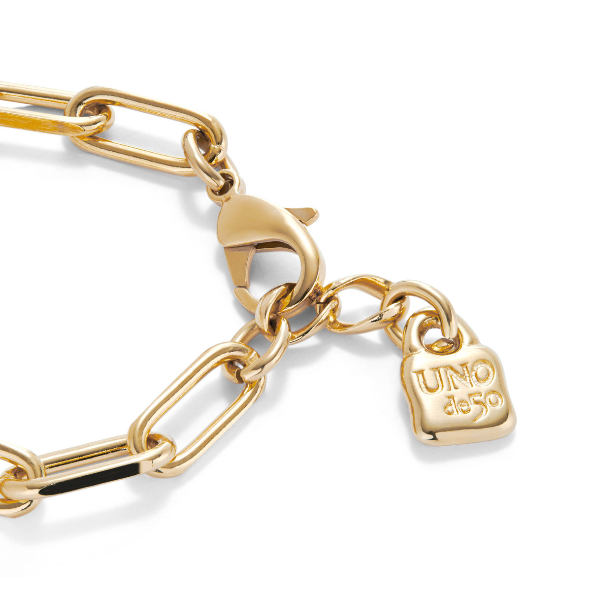 Оцените лаконичность современного стиля благодаря браслету SER VALIENTE с золотом, арт. PUL2468ORO000, созданному для тех, кто ценит простоту и изысканность. Этот аксессуар, изготовленный вручную из уникального сплава ZAMAK, станет идеальным дополнением к различным образам, добавляя стильной утонченной роскоши. Браслет представляет собой цепочку, состоящую из крупных звеньев и оснащенную застежкой-карабином. Украшающий изделие фирменный замочек UNOde50 подчеркивает эксклюзивность сверкающего позолотой аксессуара. Этот браслет, выдержанный в стиле минимализма, — станет идеальным выбором для повседневного ношения, а в комбинации с ожерельем арт. COL1944ORO0000U, создаст потрясающий комплект, который может украсить любой наряд.