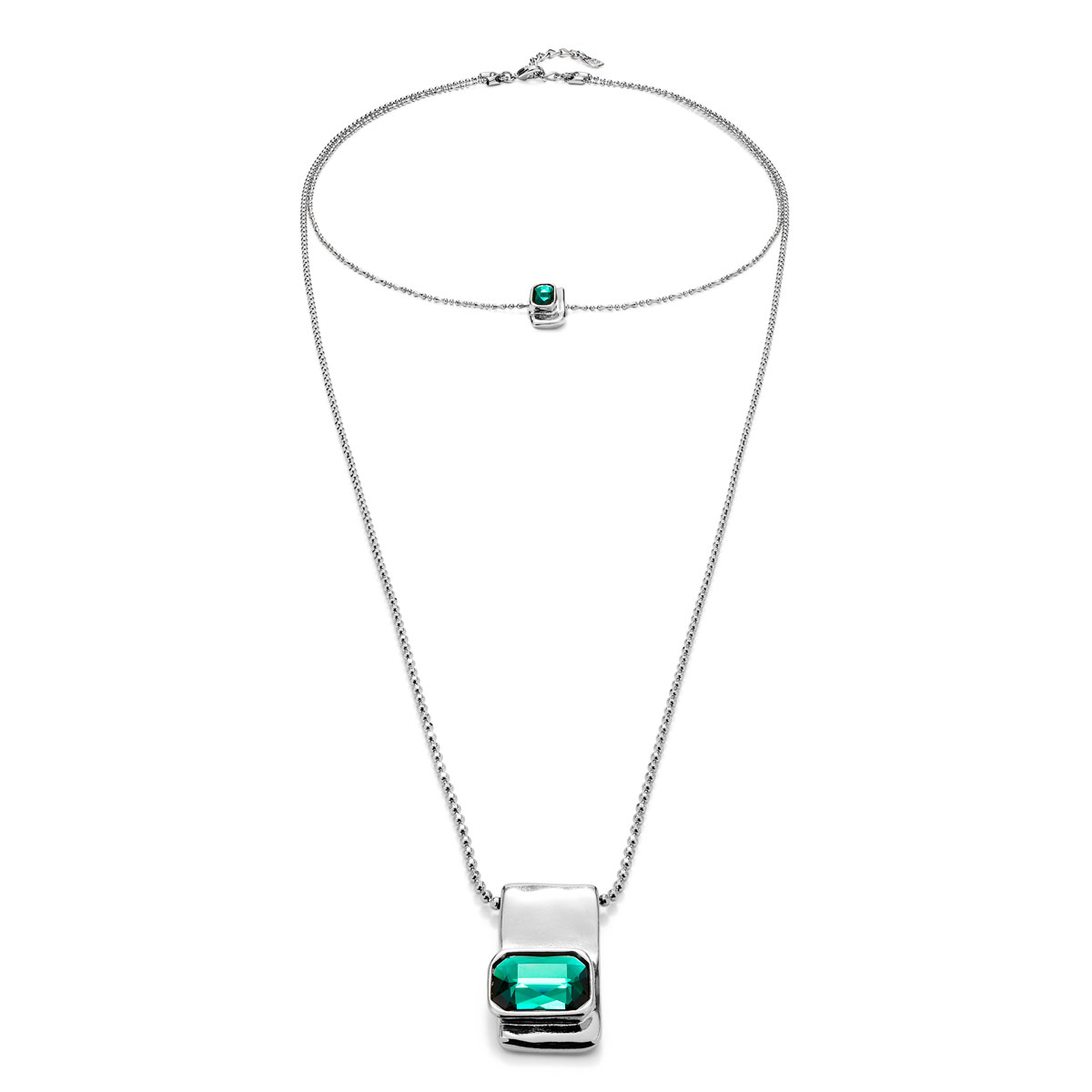 Почувствуйте волшебство стиля с уникальным ожерельем Ser Magnetica с зелеными кристаллами, с серебром, арт. COL1957VRDMTL0U. Это двухуровневое украшение, состоящее из укороченной и длинной цепочки, выглядит одновременно элегантно и современно, добавляя образу глубину и утонченность. На верхнем уровне расположен небольшой, аккуратный зеленый кристалл, а на нижнем — более крупный камень. Глубокий оттенок привлекает внимание своей насыщенностью и символизирует природную гармонию. Цепочки и обрамление кристаллов выполнены из посеребренного сплава ZAMAK. Органичное сочетание элементов придает изделию легкость и визуальный баланс, делая его универсальным аксессуаром для любого случая. Каждая деталь этого колье создана вручную, что подчеркивает эксклюзивность украшения и говорит о высоком уровне мастерства.