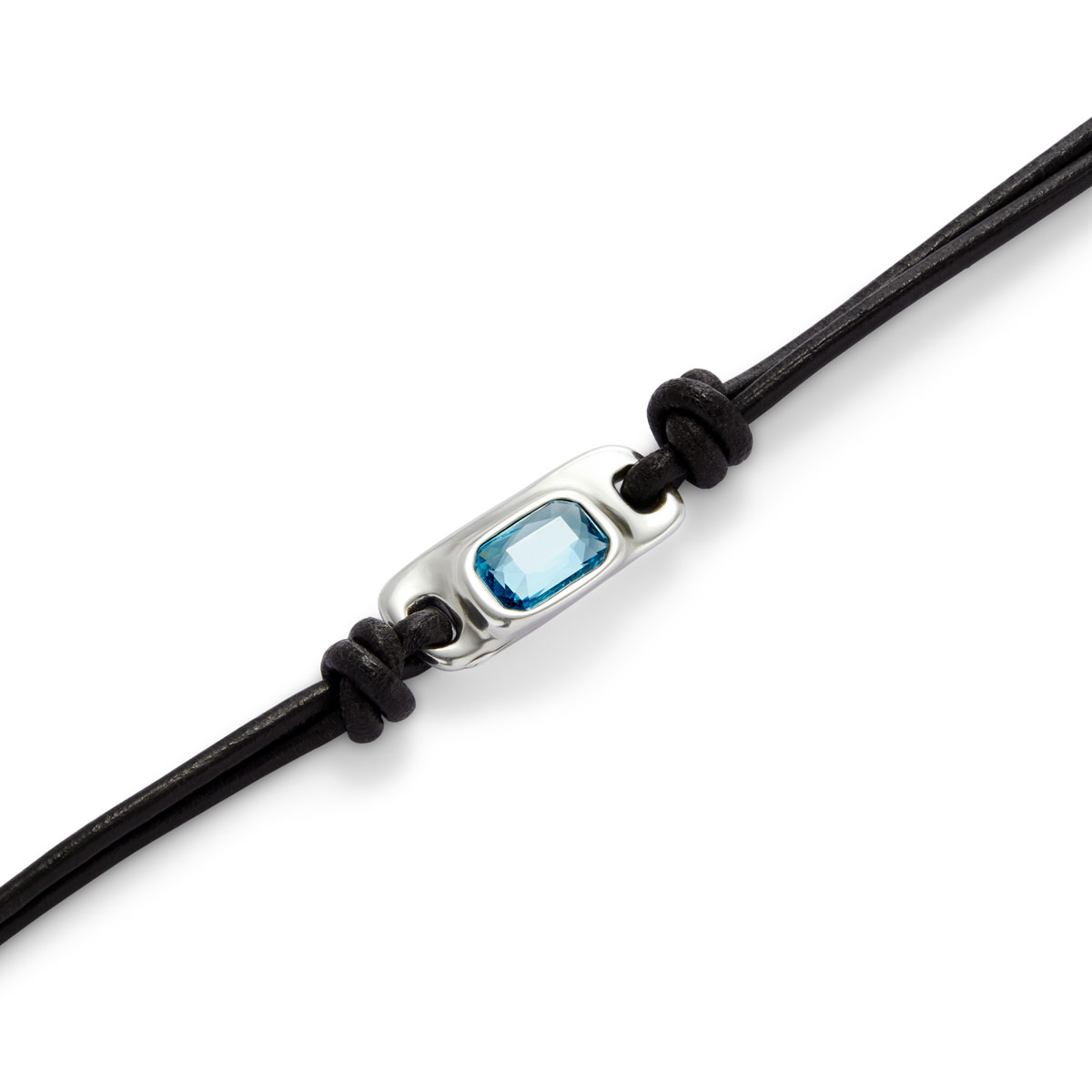 Кожаный браслет Ser Magnetica с голубым кристаллом, с серебром