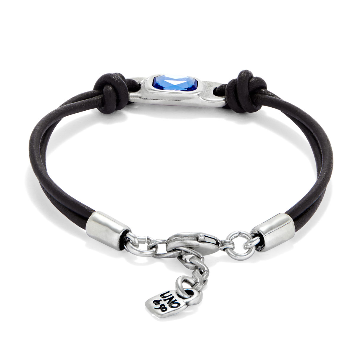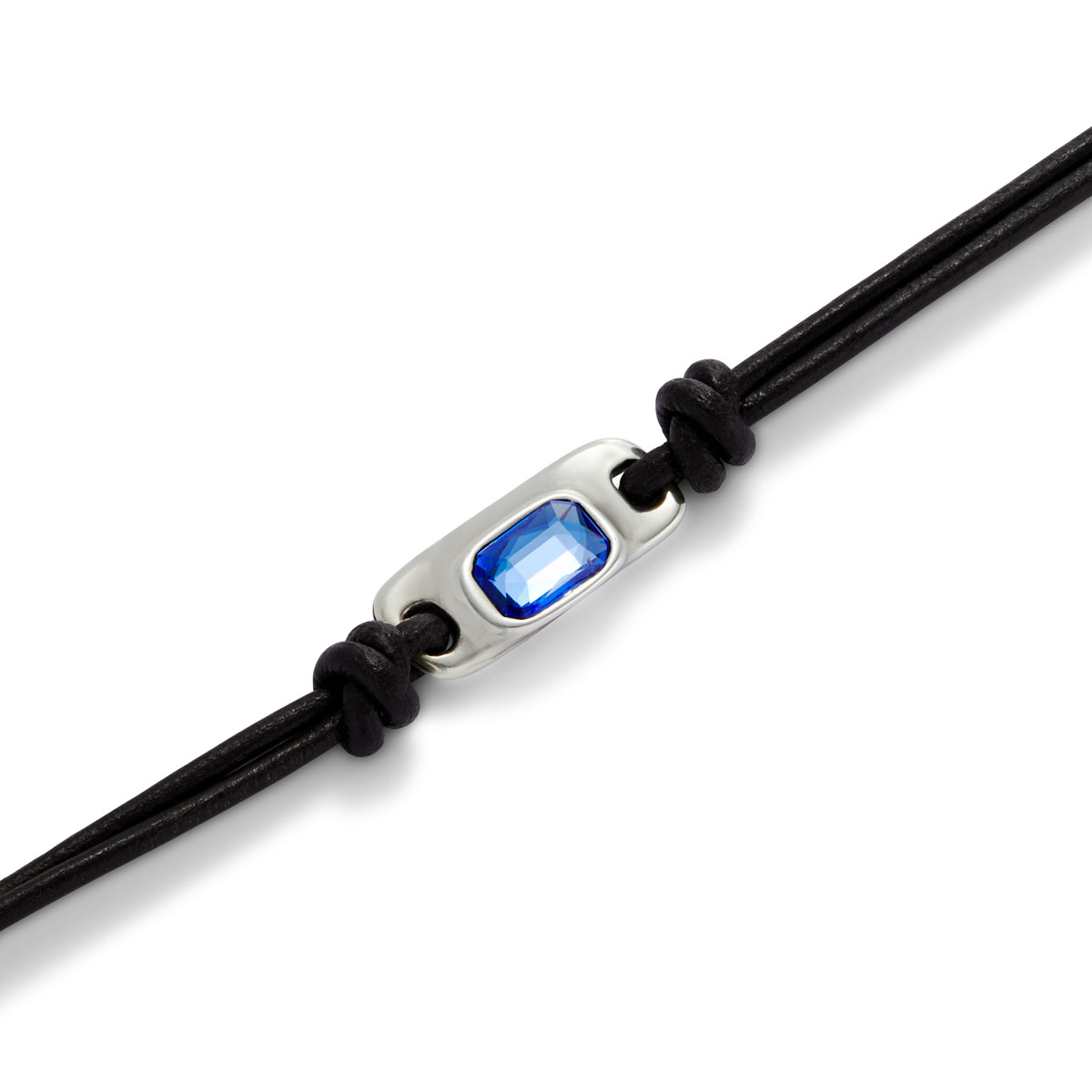 Кожаный браслет Ser Magnetica с синим кристаллом, с серебром