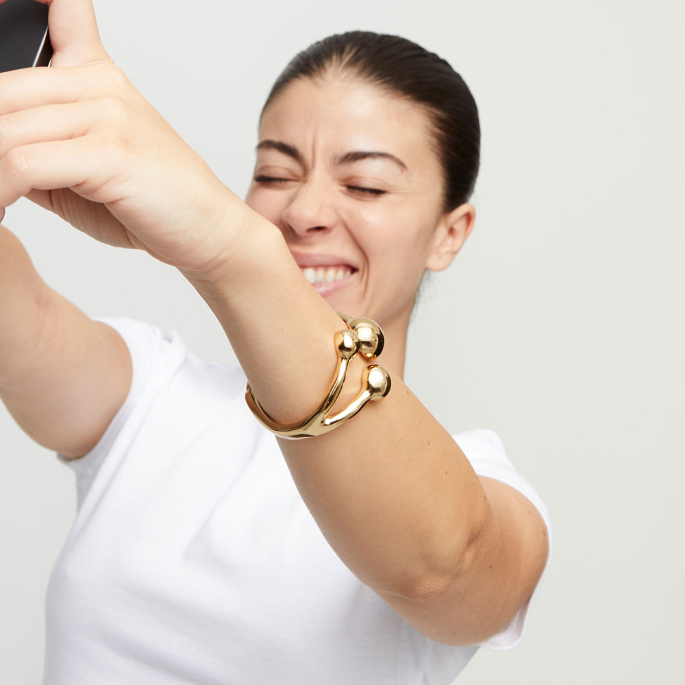 Проявите свое творческое начало с помощью браслета Ser Intrepida с золотом, арт. PUL2546ORO000. Неординарный авторский дизайн аксессуара, изготовленного вручную из уникального сплава ZAMAK, привлекает внимание и вызывает восхищение. Жесткий браслет состоит из плавных текучих линий, увенчанных тремя гладкими сферическими элементами. Футуристическая форма изделия создает ощущение, что это настоящее произведение искусства. Выбор такого аксессуара — идеальный способ раскрыть свою индивидуальность и продемонстрировать художественный вкус.