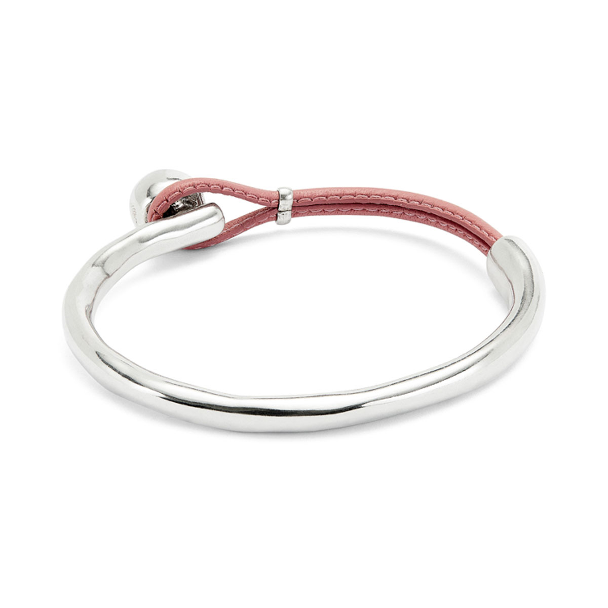 Будьте смелее в выражении своей индивидуальности, выбрав неординарный аксессуар — браслет Ser Intrepida с серебром и розовой кожей, арт. PUL2551RSAMTL. Аксессуар, изготовленный вручную из уникального сплава ZAMAK, представляет собой разомкнутое кольцо, которое завершается участком кожаного ремешка нежного розового цвета. Текучие линии сверкающего серебрением металла контрастируют с мягкой текстурой и оттенком кожи. Креативная застежка, в которой кожаная петелька накидывается на металлическую шляпку, служит центральным элементом, добавляющим украшению оригинальности. Фирменная гравировка UNOde50 подчеркивает эксклюзивность изделия. Нетривиальный авторский дизайн украшения будет привлекать внимание, куда бы вы ни отправились, и позволит проявить свою творческую натуру.