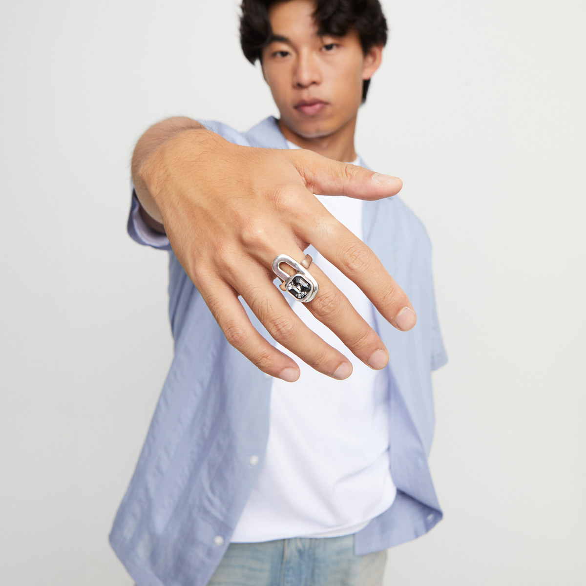Подчеркните свою индивидуальность с кольцом Ser Expresiva с черным кристаллом, с серебром, арт. ANI0841NGRMTL. Этот изысканный аксессуар сочетает в себе уникальный дизайн, магию символизма и мастерство ручной работы. Главная деталь — кристалл глубокого цвета, символизирующий загадочность, силу и уверенность. Его насыщенный оттенок придает украшению выразительность и неповторимый характер. Украшение изготовлено из премиального сплава ZAMAK, а дополнительное серебрение придает ему роскошное сияние и изысканную текстуру. Лаконичный, но эффектный дизайн делает это кольцо универсальным украшением для любого образа.