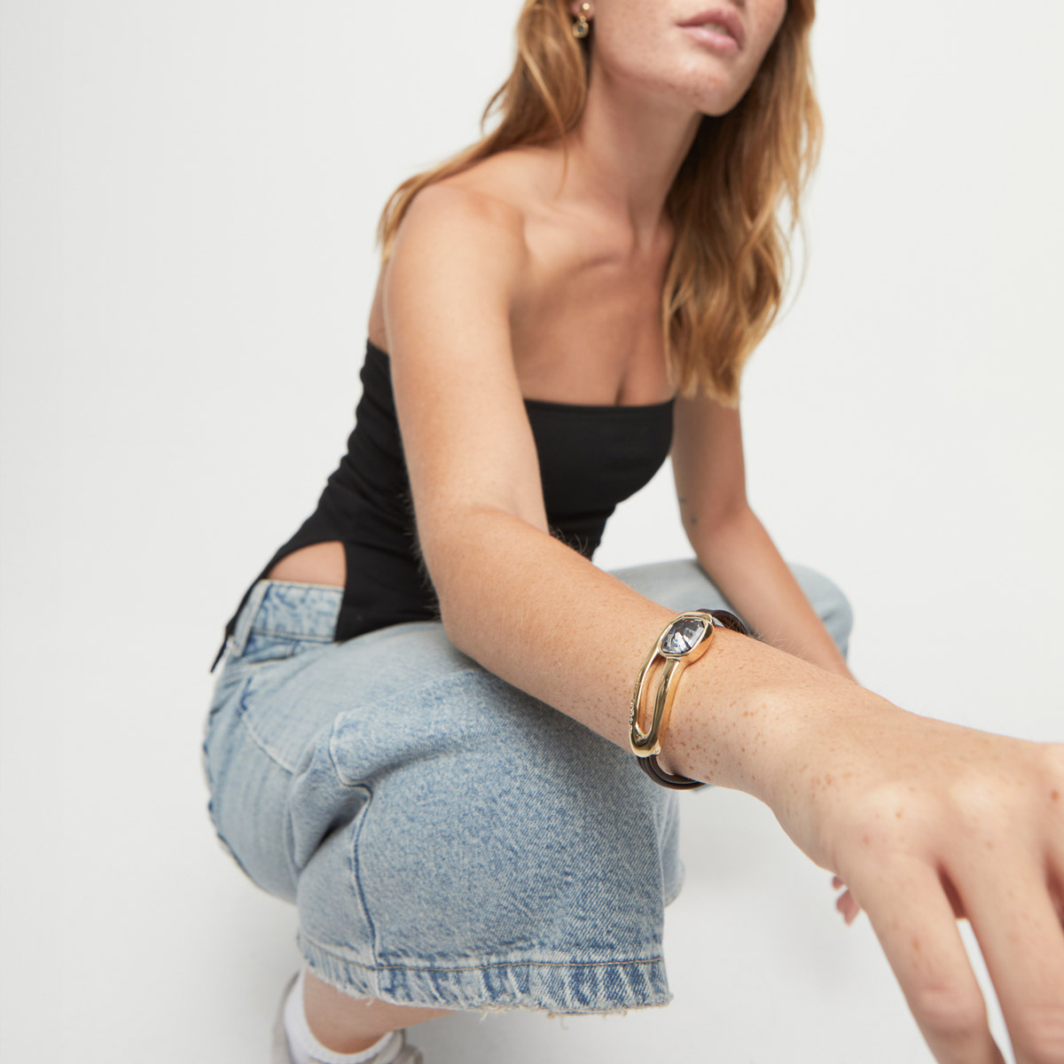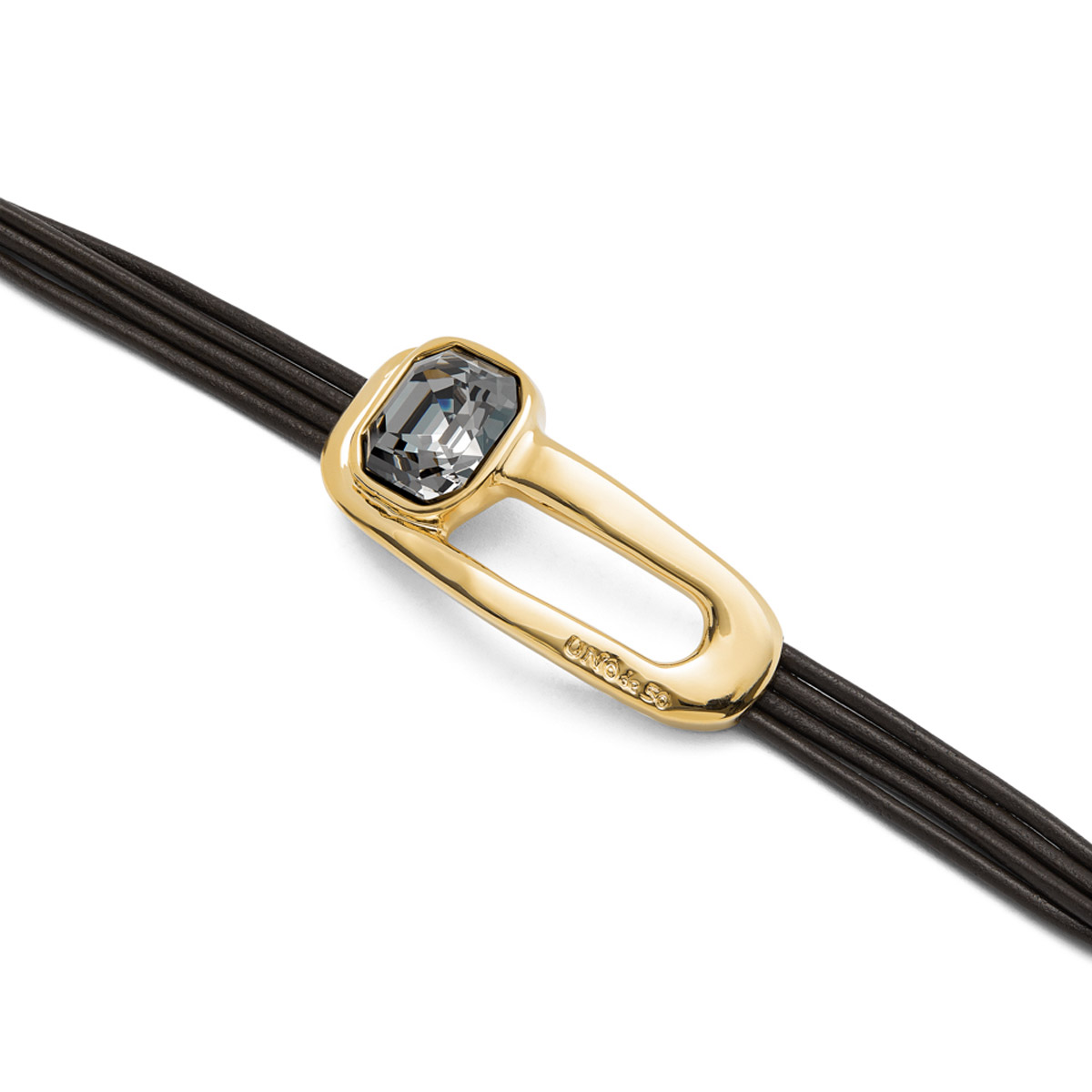Кожаный браслет Ser Expresiva с черным кристаллом, с золотом