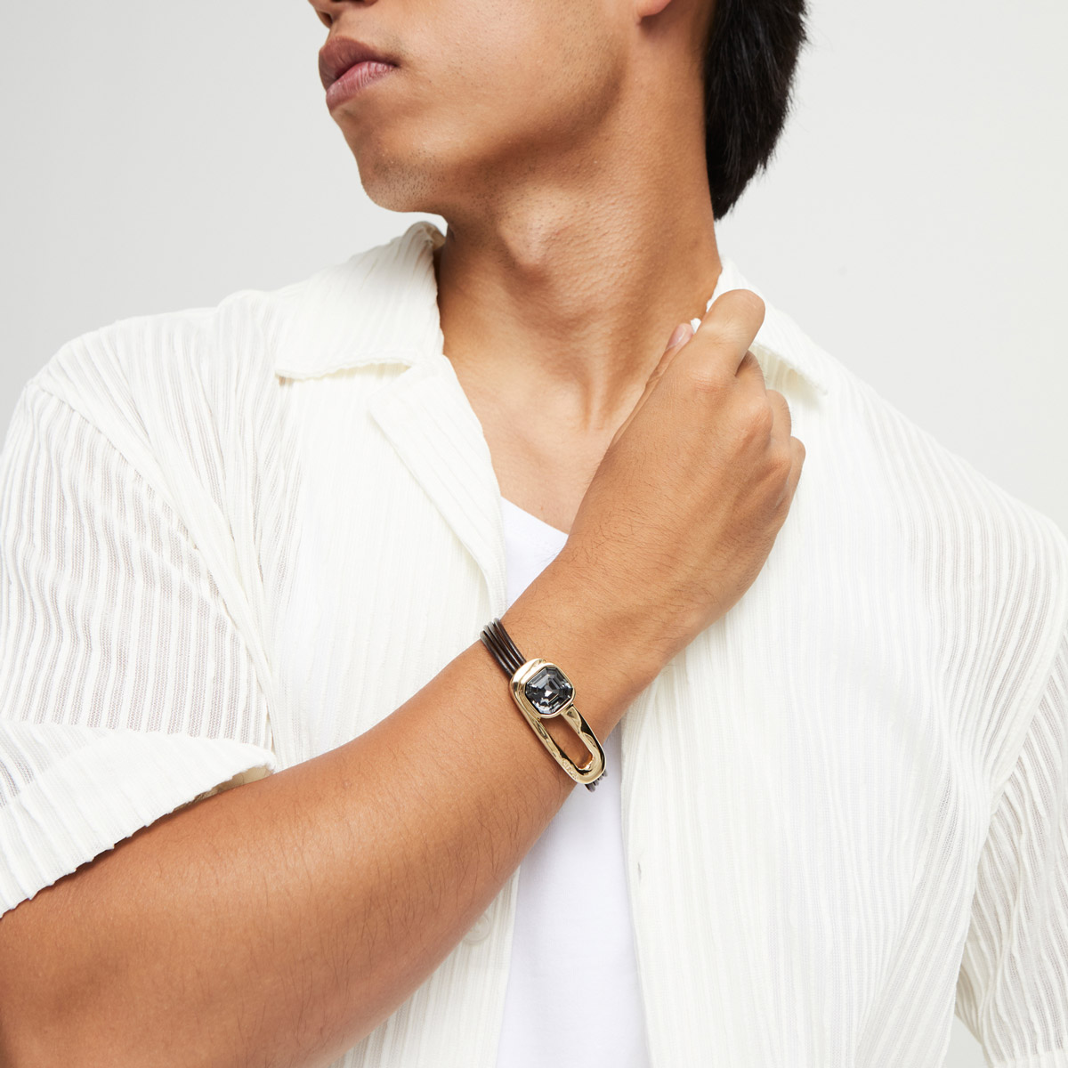Создайте стильный акцент с помощью кожаного браслета Ser Expresiva с кристаллом, с золотом, арт. PUL2513NGRORO. Этот уникальный аксессуар сочетает в себе брутальность черной кожи и элегантность позолоченного сплава ZAMAK, создающих эффектный контраст. Необычная геометрия центрального элемента притягивает взгляд. Дополняет композицию граненный черный кристалл, который добавляет изделию выразительности. Ручная работа делает аксессуар по-настоящему уникальным. Благодаря мягкой кожаной основе браслет комфортен в носке, а его эксклюзивный дизайн позволяет использовать украшение как в повседневной жизни, так и для праздничных событий.