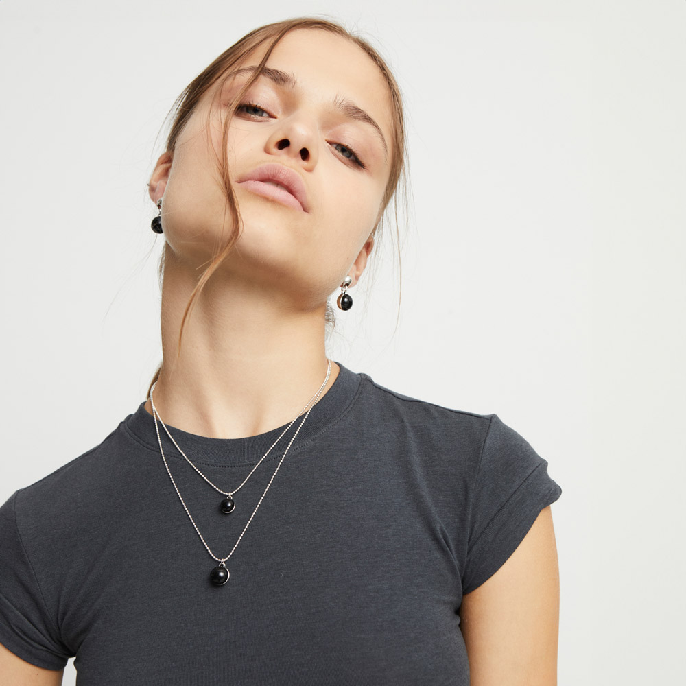 Подвеска из чёрного муранского стекла на двойной серебряной цепочке – то что нужно для отражения вашей индивидуальности. Не сомневайтесь: надев это украшение под любой вечерний образ, вы очаруете любого, кто едва встретится с вами взглядом. Отметим, что кулон прекрасно дополнит кольцо с чёрным муранским стеклом из коллекции Ser Fascinante. Поиграйте со своими хорошими сторонами, вытащите свою экстравагантность, и продемонстрируйте её окружающим. Пришло время показать, кто здесь королева вечера!