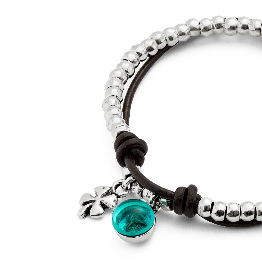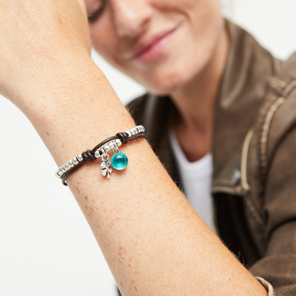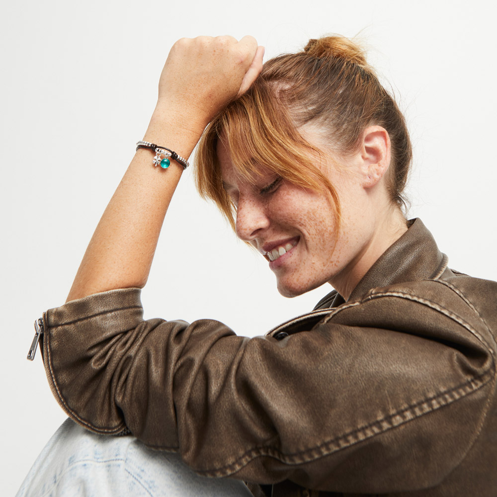 Браслет из посеребренных бусин с зелёным муранским стеклом, обрамлённый шнурком из кожи – идеальный вариант, чтобы дополнить повседневный образ. Такая стильная деталь не останется незамеченной и будет притягивать множество восхищённых взглядов. Серебряный браслет из коллекции Ser Fascinante – то, что сделает вас особенной.