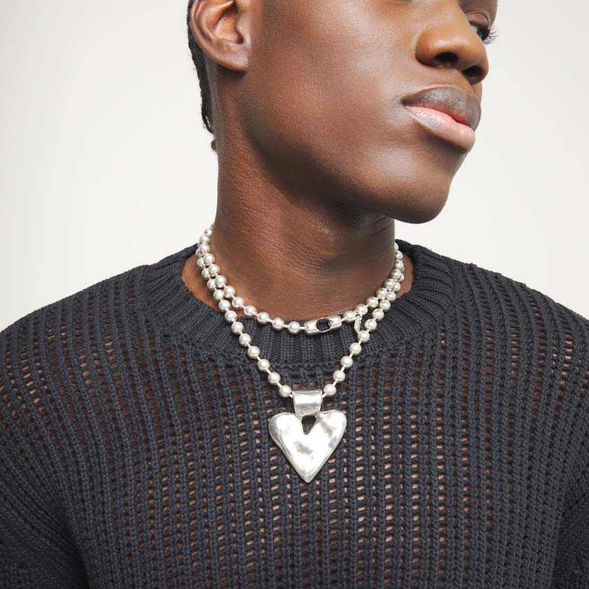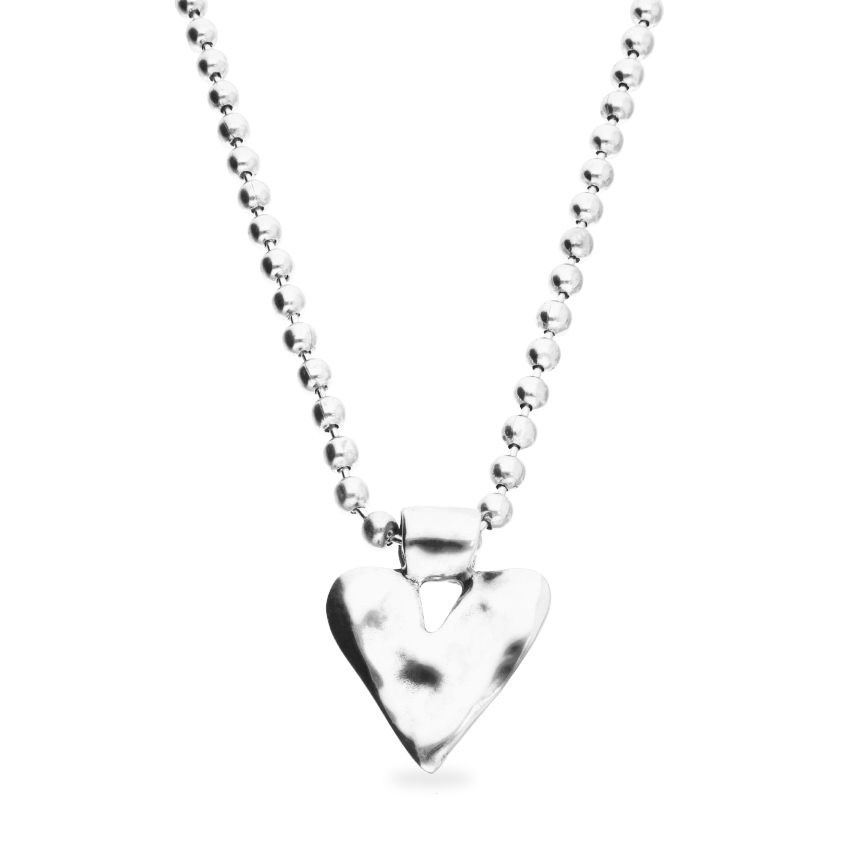 Ожерелье выполнено из сплава ZAMAK с серебряным покрытием и дополнено деталью в форме большого сердца. Украшение выполнено вручную и станет символом большой любви: к себе и окружающему миру.
