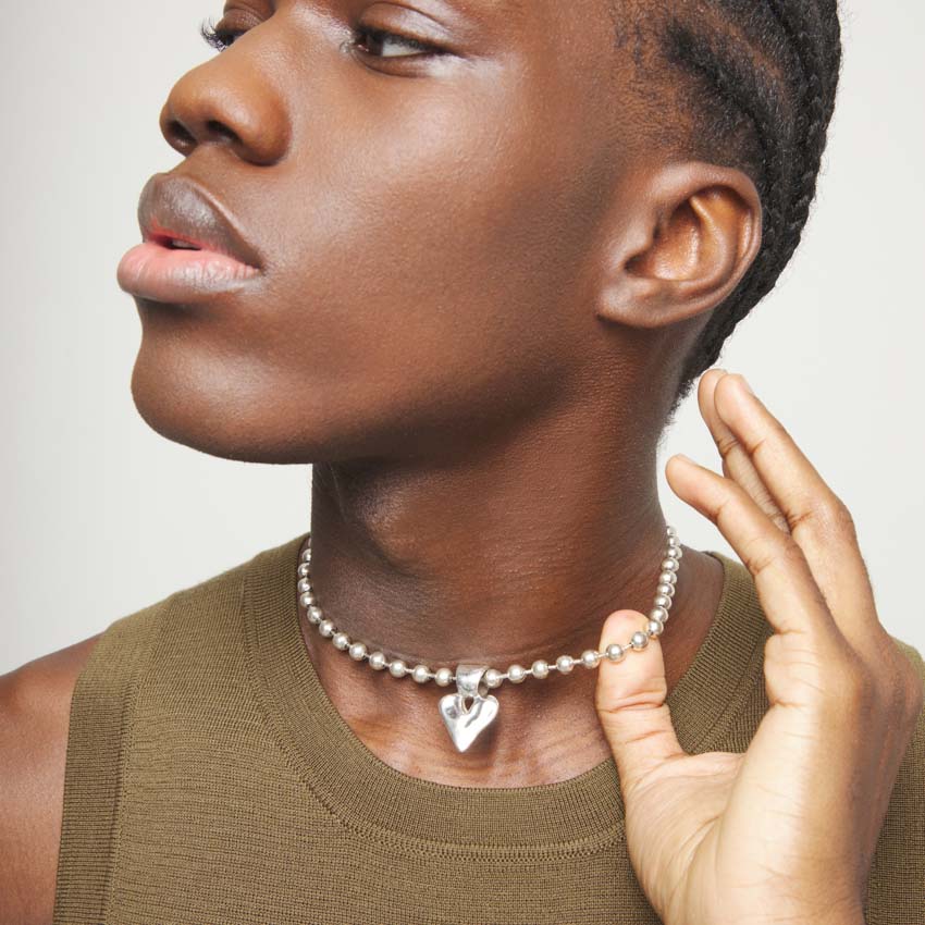 Ожерелье выполнено из посеребренного сплава ZAMAK и дополнено подвеской-сердцем с серебряным покрытием. Украшение изготовлено вручную, впишется в повседневные образы и станет символом внутреннего ритма, с которым хочется двигаться дальше.