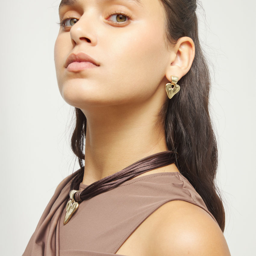 Серьги выполнены из сплава ZAMAK с золотым покрытием. Застежка-гвоздик обеспечивает надежную фиксацию, а подвесной элемент добавляет украшению легкость и динамику. Каждое изделие изготовлено вручную и имеет слегка неровную форму, подчеркивающую его индивидуальность. Украшение станет символом вашей трепетности и особенно хорошо будет выглядеть в сочетании с кольцом или ожерельем этой же модели.
