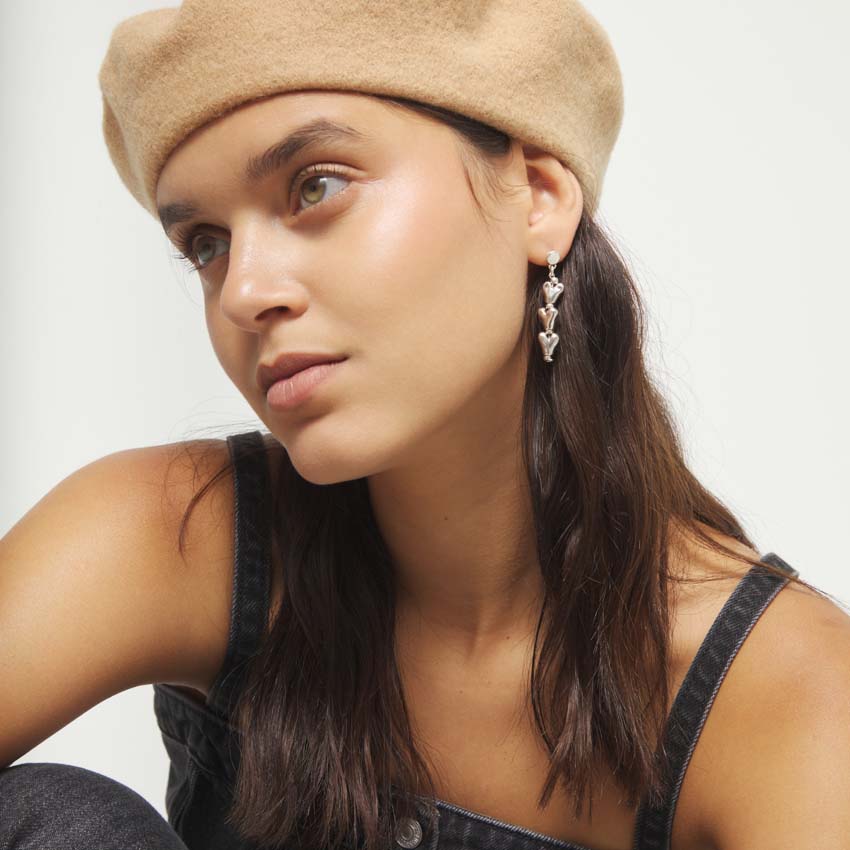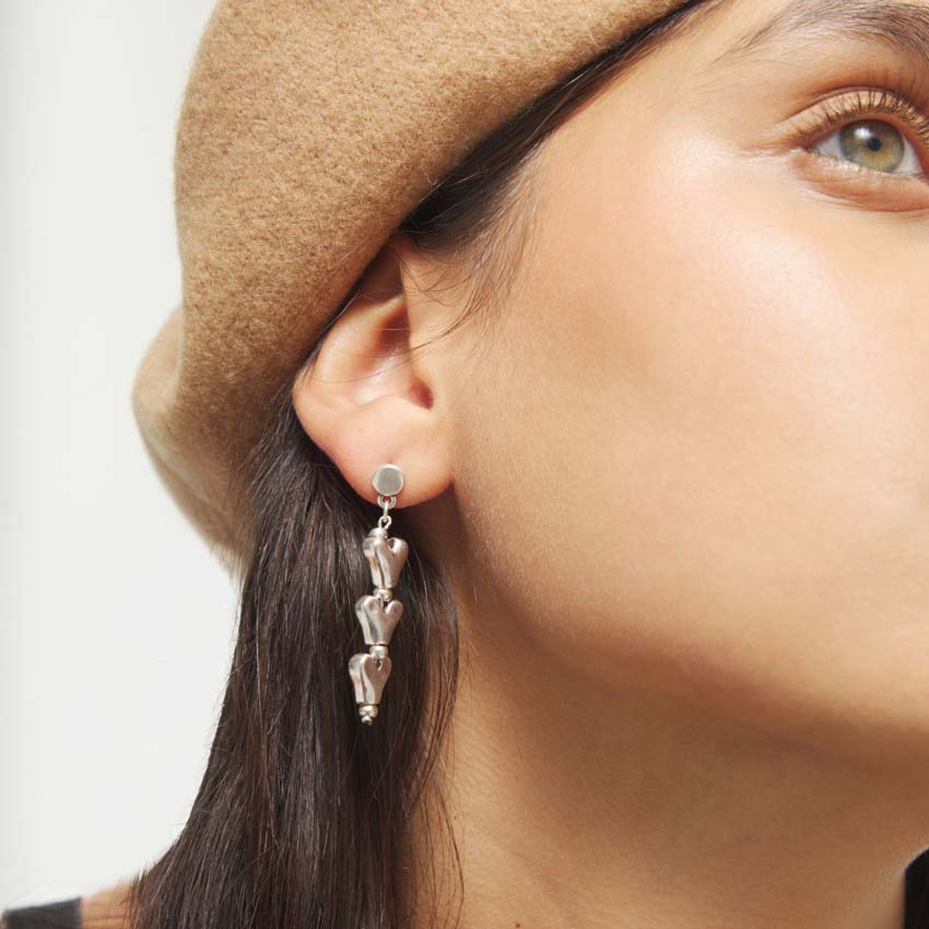 Серьги выполнены в форме каплевидных сердец из сплава ZAMAK с серебряным покрытием. Подвижная конструкция обеспечивает красивую динамику в движении, а застежка-гвоздик надежно фиксирует украшение в ухе. Эти серьги станут символом ваших искренних чувств, которые не нужно прятать или объяснять.