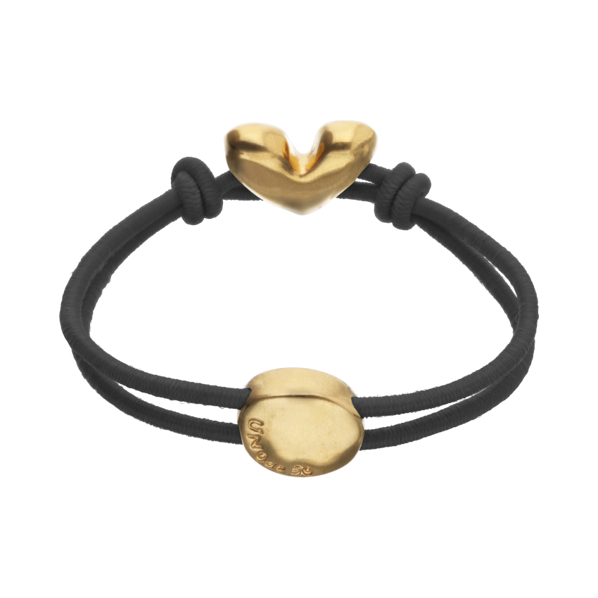 Браслет выполнен из прочного текстильного шнура и дополнен металлической деталью в форме сердца из сплава ZAMAK с золотым покрытием. Украшение изготовлено вручную и подойдет для повседневных образов.