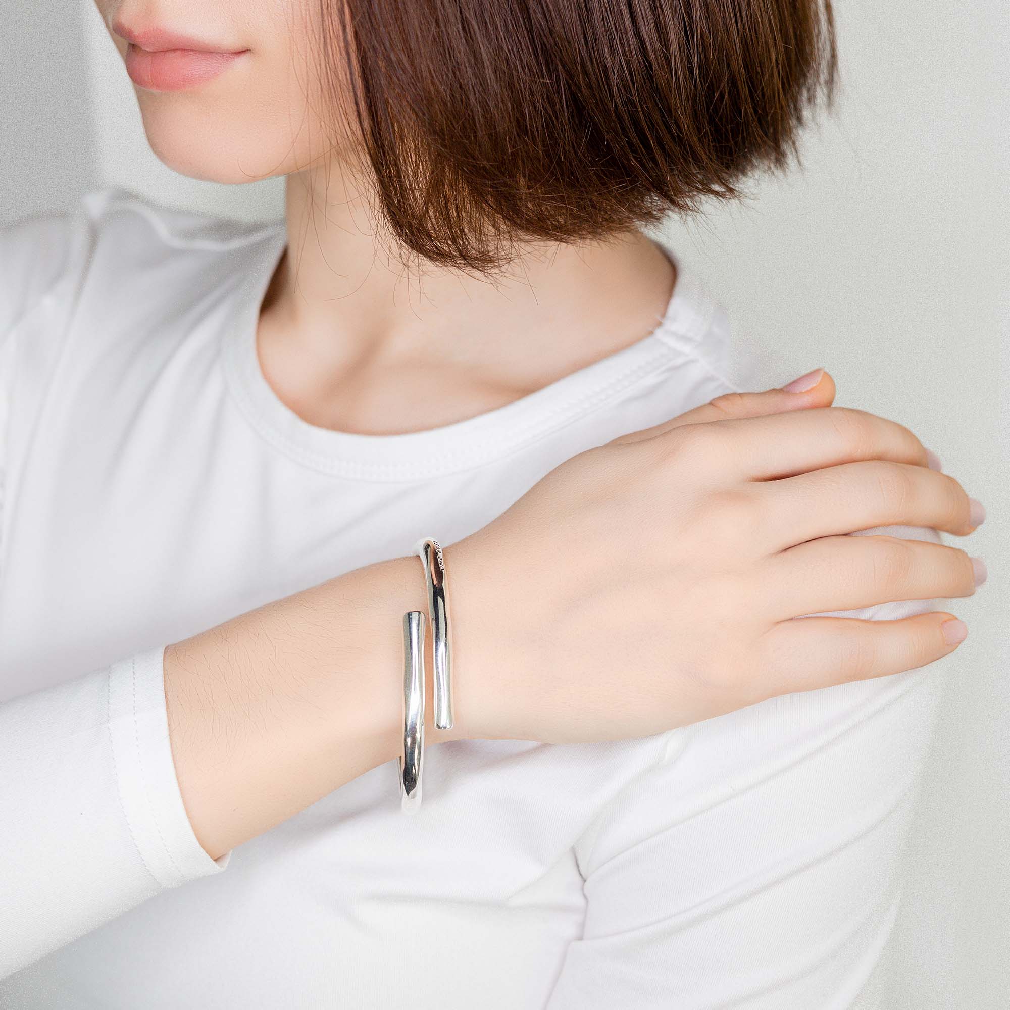 Meeting Point представляет собой жесткий браслет в форме свернутой тонкой трубки с пересекающимися хвостиками. Он оснащен скрытой пружинной застежкой, сочетающей в себе практичность и элегантность. Тщательно изготовленный вручную в Испании с использованием ремесленных техник из металлического сплава ZAMAK с серебряным покрытием в 15 микрон. Носите этот браслет с другими изделиями UNOde50, чтобы сделать вашу коллекцию украшений уникальной.