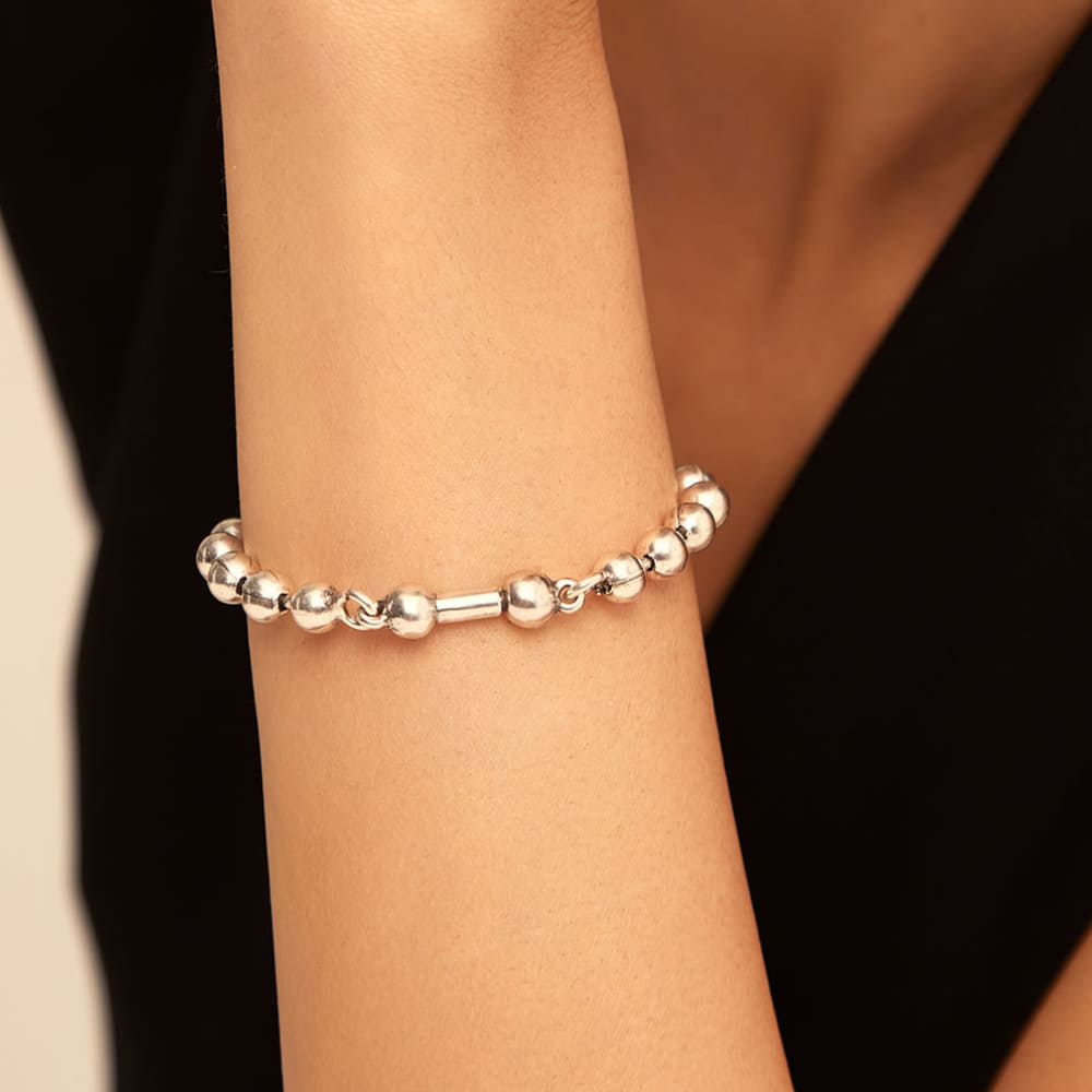 Изящный браслет «Pick 1» арт. PUL1924MTL0000S, образованный несколькими металлическими шариками с серебряным покрытием, куда вы можете добавить свой любимый шарм. Украшение оснащено удобным замком. Это уникальный аксессуар, разработанный брендом UNOde50 и изготовленный полностью вручную. Идеальный подарок, которым можно удивить близкого человека или порадовать себя. Изделие доступно в нескольких размерах.