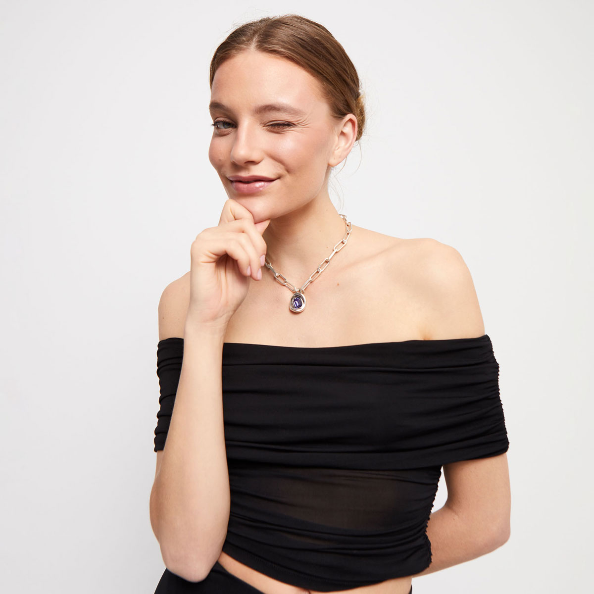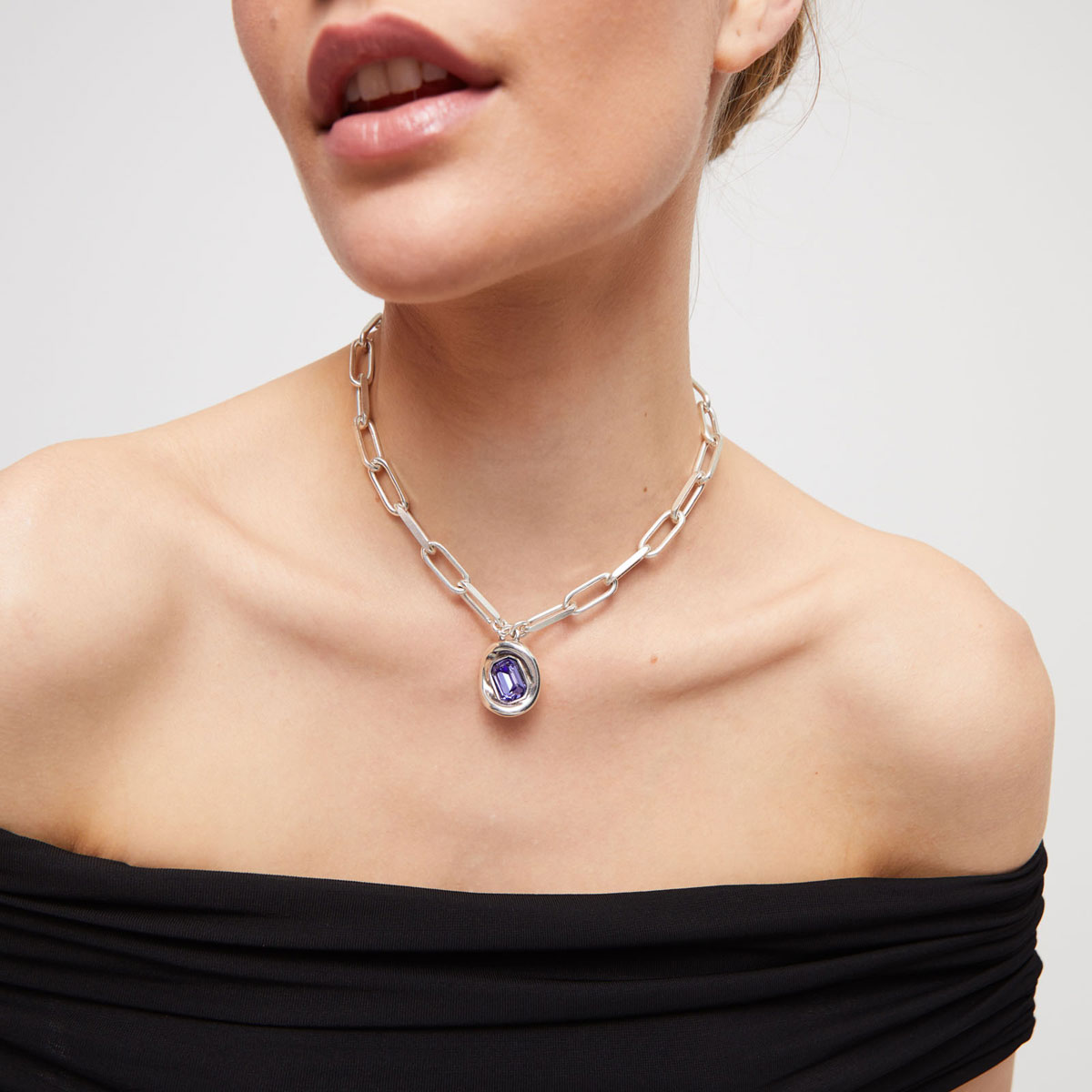 Ожерелье Ser Valiente с фиолетовым кристаллом, с серебром