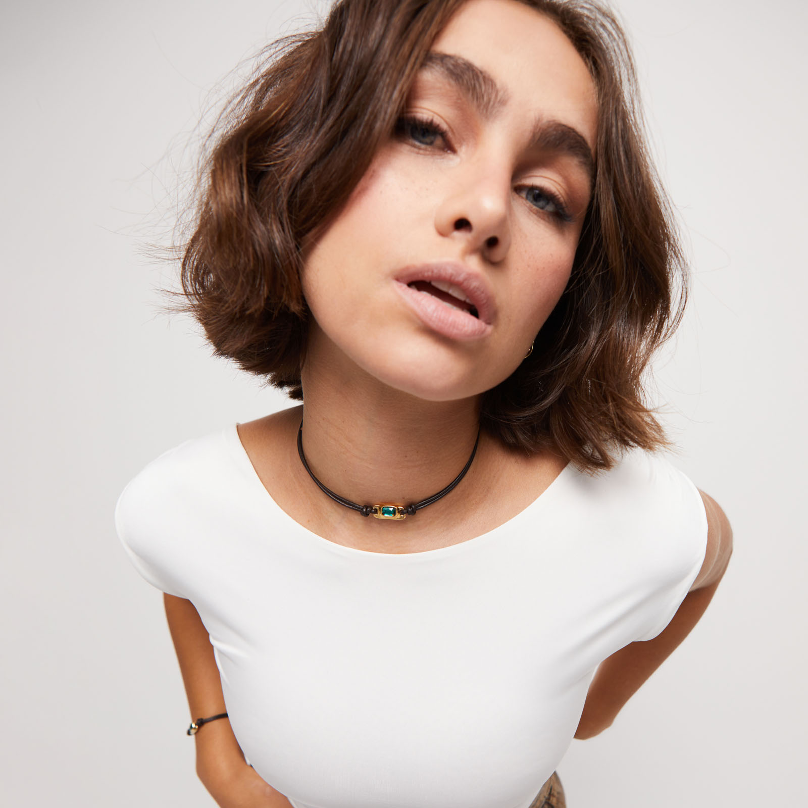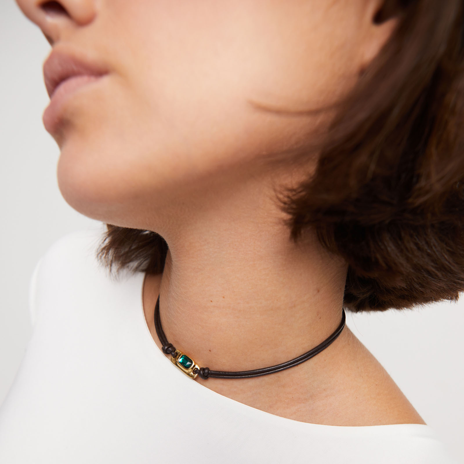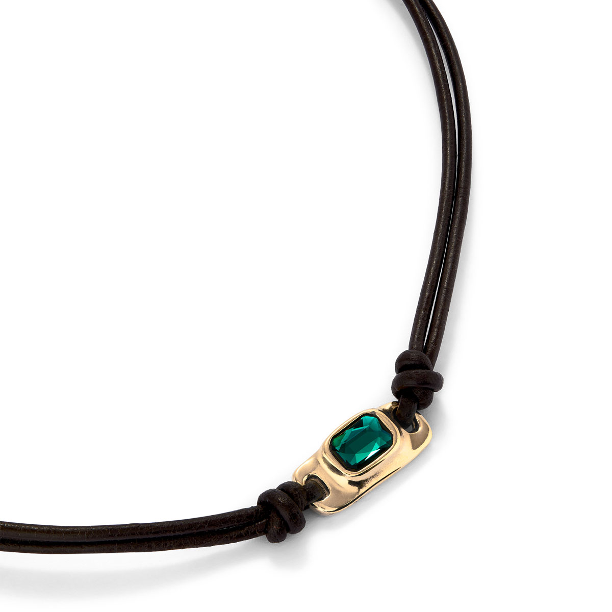 Выразите свою индивидуальность с помощью элегантного и современного аксессуара — кожаного ожерелья Ser Magnetica с зеленым кристаллом, с золотом, арт. COL1966VRDORO0U. Это стильное украшение сочетает черные кожаные шнуры и центральный элемент с насыщенным зеленым кристаллом, который завораживает своим глубоким оттенком. Кристалл обрамлен уникальным сплавом ZAMAK с позолотой, которая добавляет изделию роскоши и благородного блеска. Колье изготовлено вручную, что подчеркивает его эксклюзивность и наделяет особенным шармом. Регулируемая застежка позволяет подобрать идеальную длину, обеспечивая комфорт при носке. Авторское украшение станет не только стильным акцентом в вашем образе, но и символом изысканного вкуса.